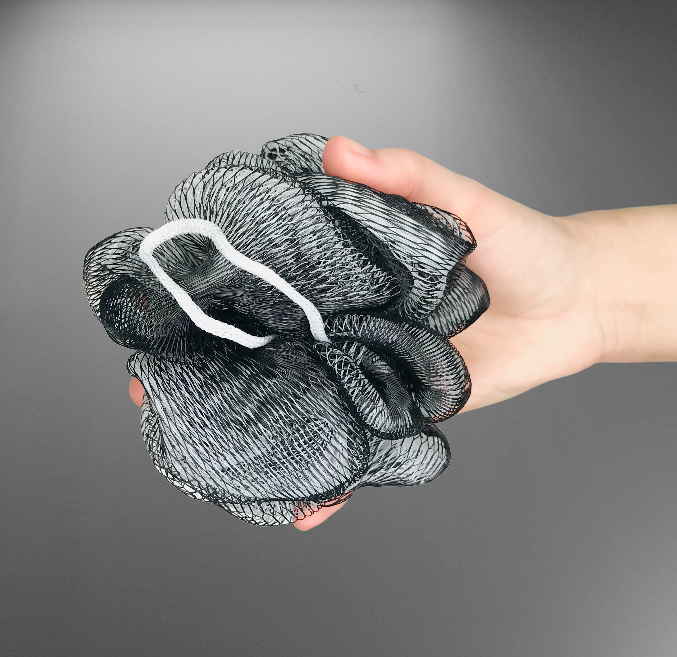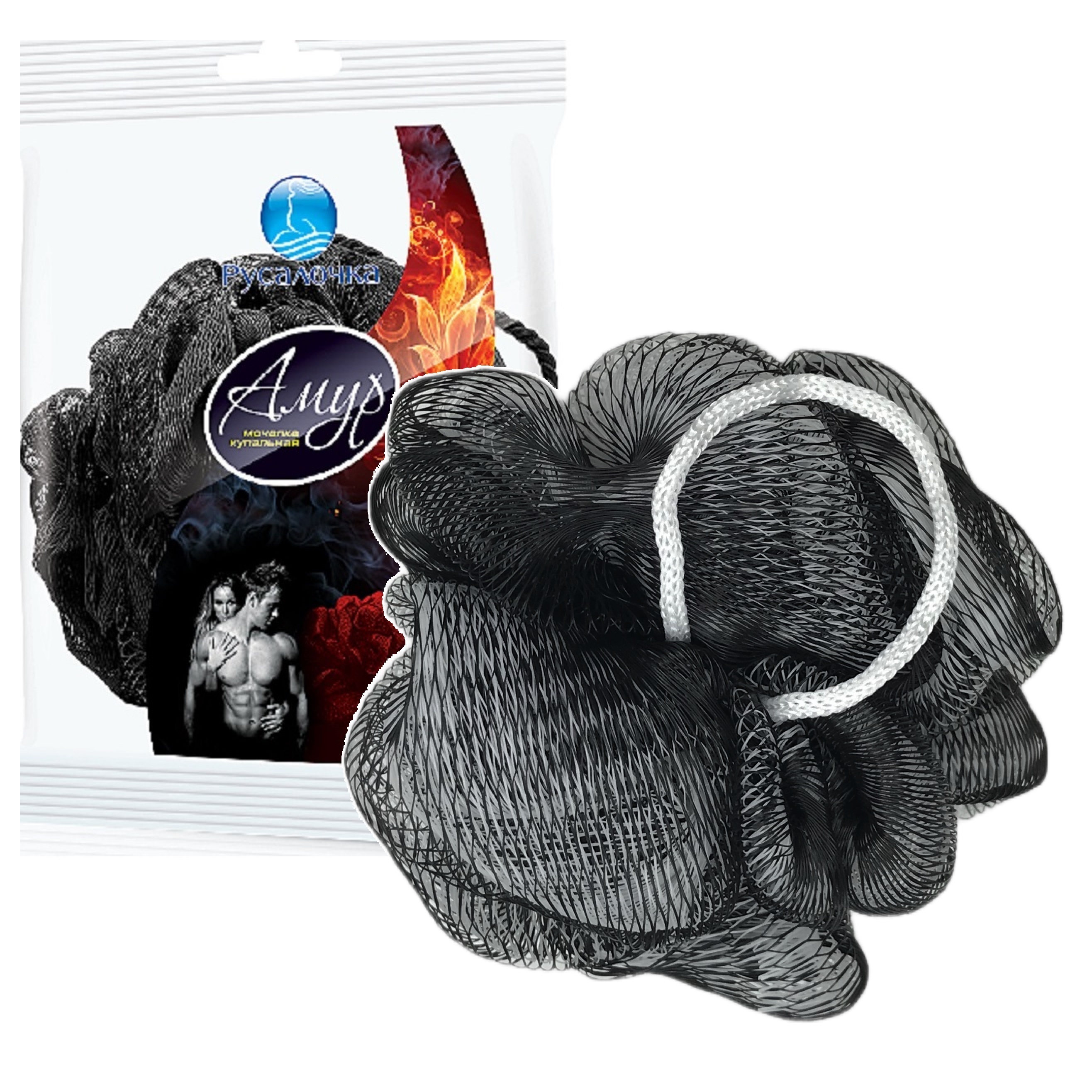 РУСАЛОЧКА Мочалка для тела ПУФ, губка для тела АМУР черная массажная подарок мужчине или женщине