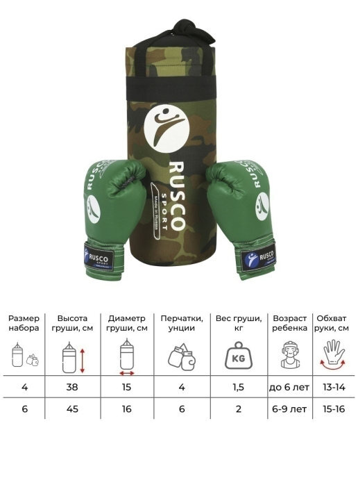Набор боксерский детский (перчатки + груша), хаки 6oz
