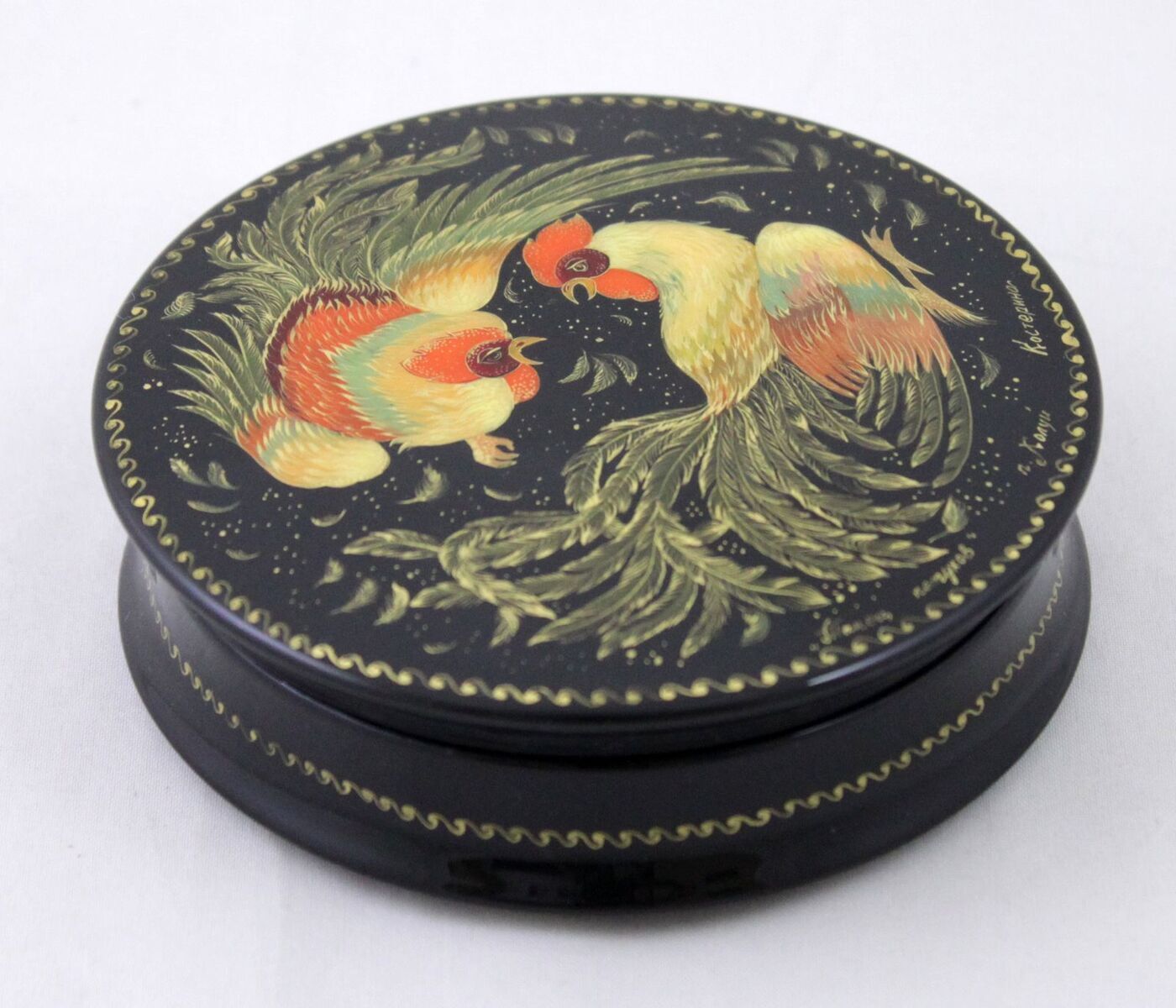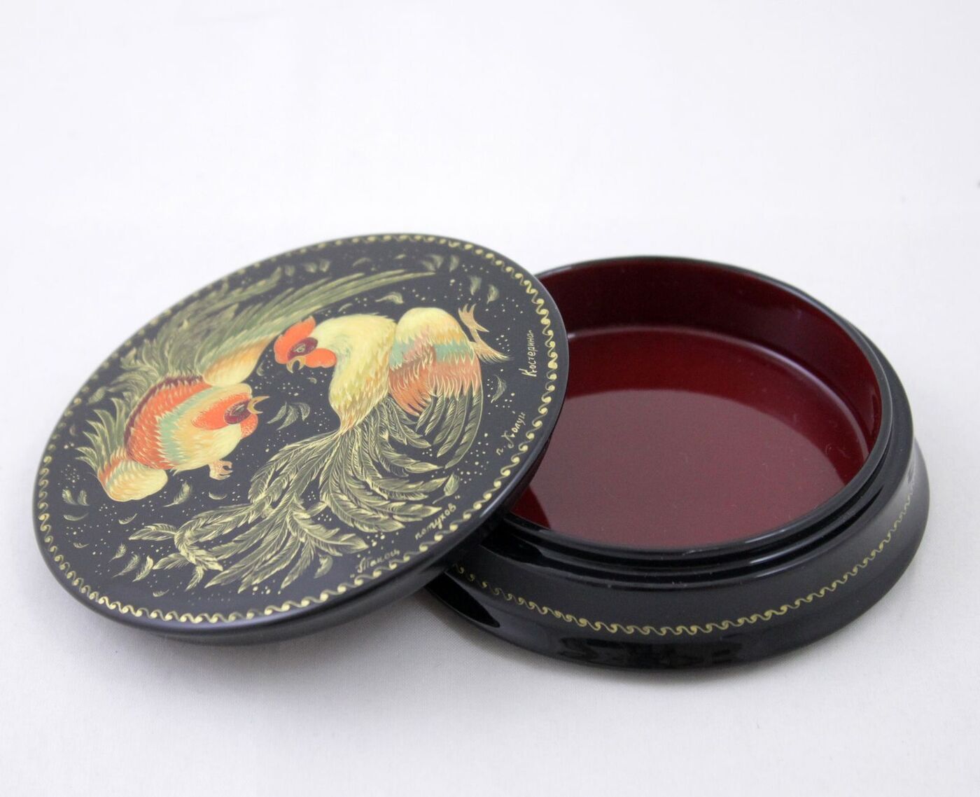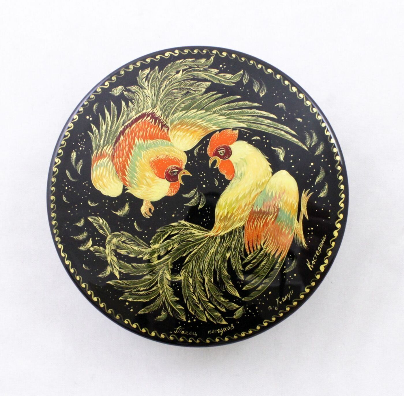 Шкатулка "Бой петухов" ручная роспись папье-маше Холуй