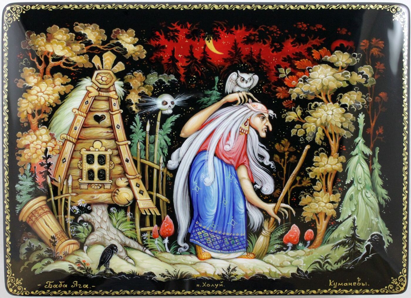 Шкатулка "Баба-яга" ручная роспись папье-маше Холуй
