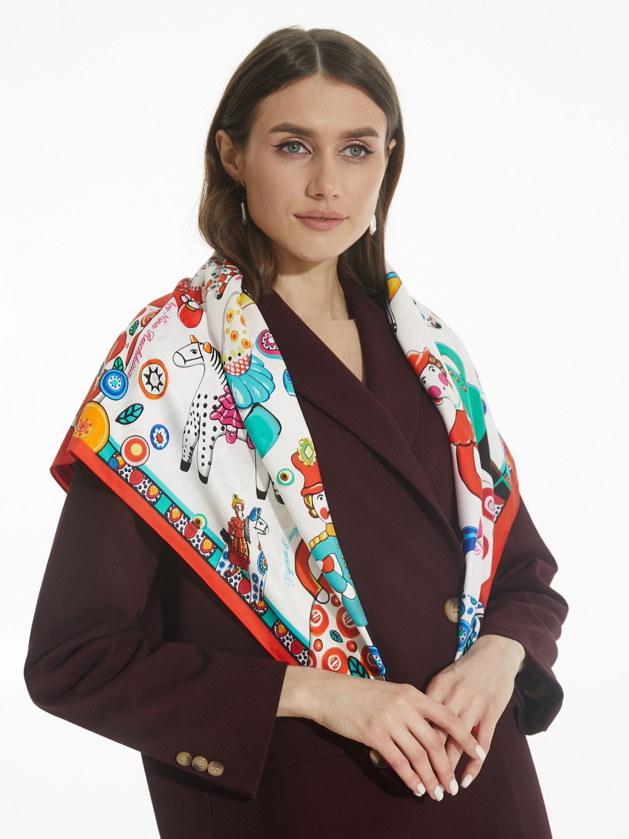 Платок "Дымковская игрушка" в подарочной коробке, цвет разноцветный