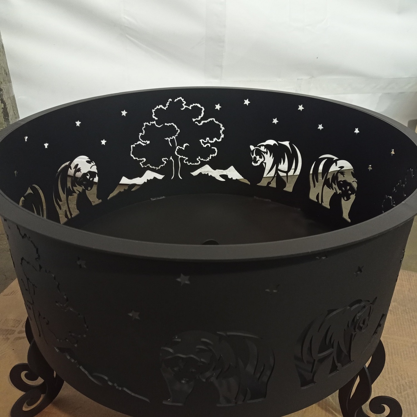 Костровая чаша "Медведи" диаметр 70 см, толщина дна 4мм, жаростойкая сталь
