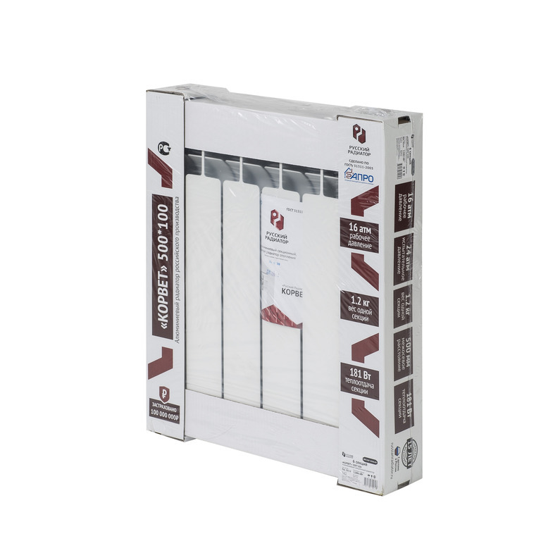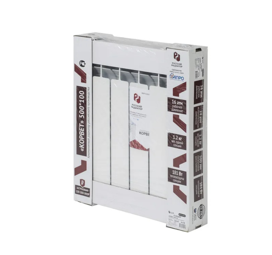 Секционный радиатор Алюминий Русский радиатор КОРВЕТ RRC500*100AL4, 4 секц.