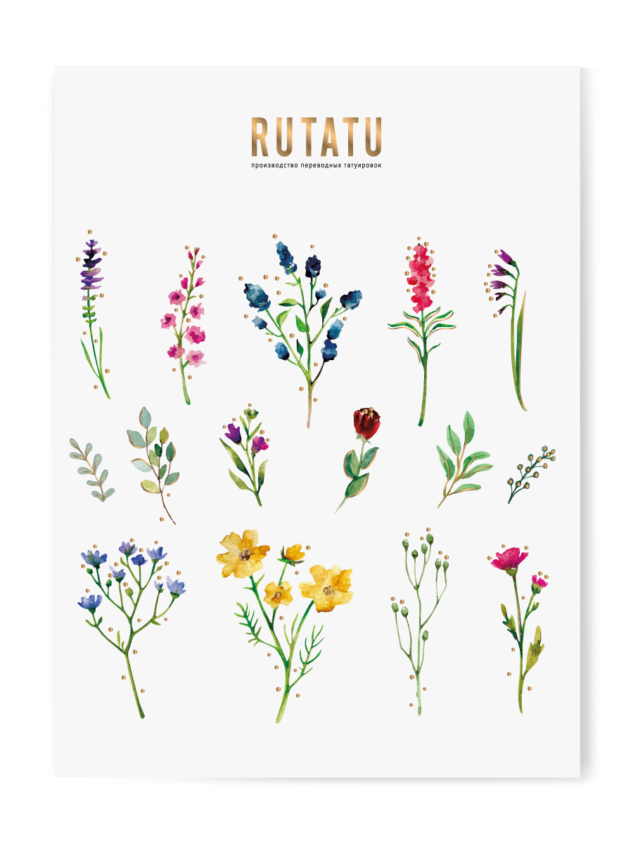 RUTATU Временная переводная тату, детские временные мини-тату Цветы акварель с золотом