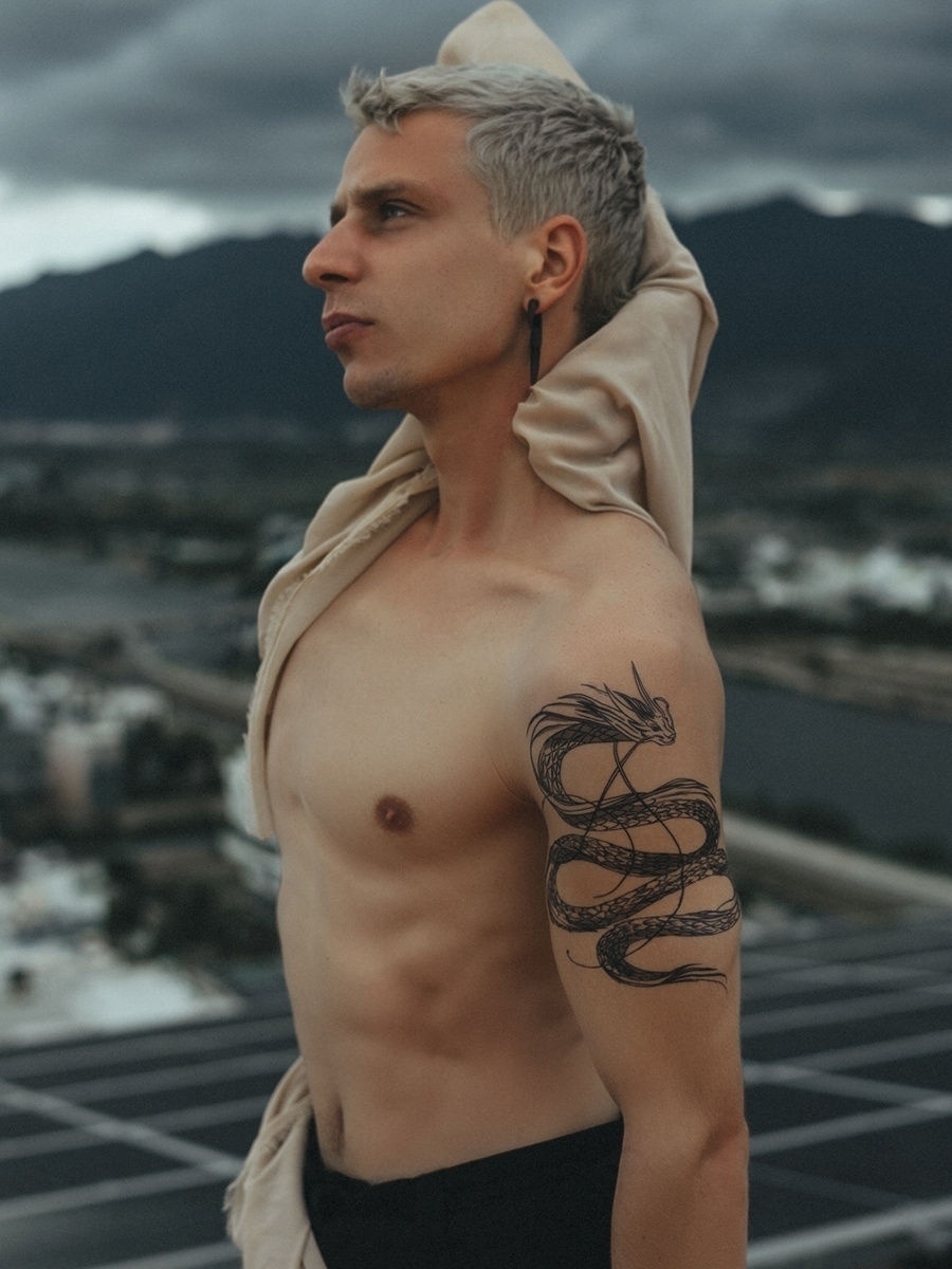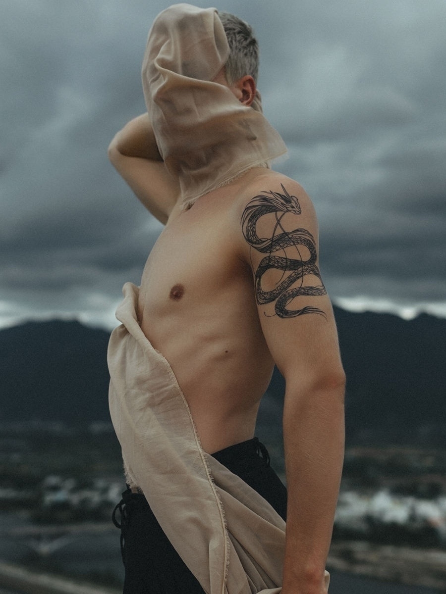 RUTATU Временная переводная тату / наклейки переводилки детские переводные татуировки Дракон черный