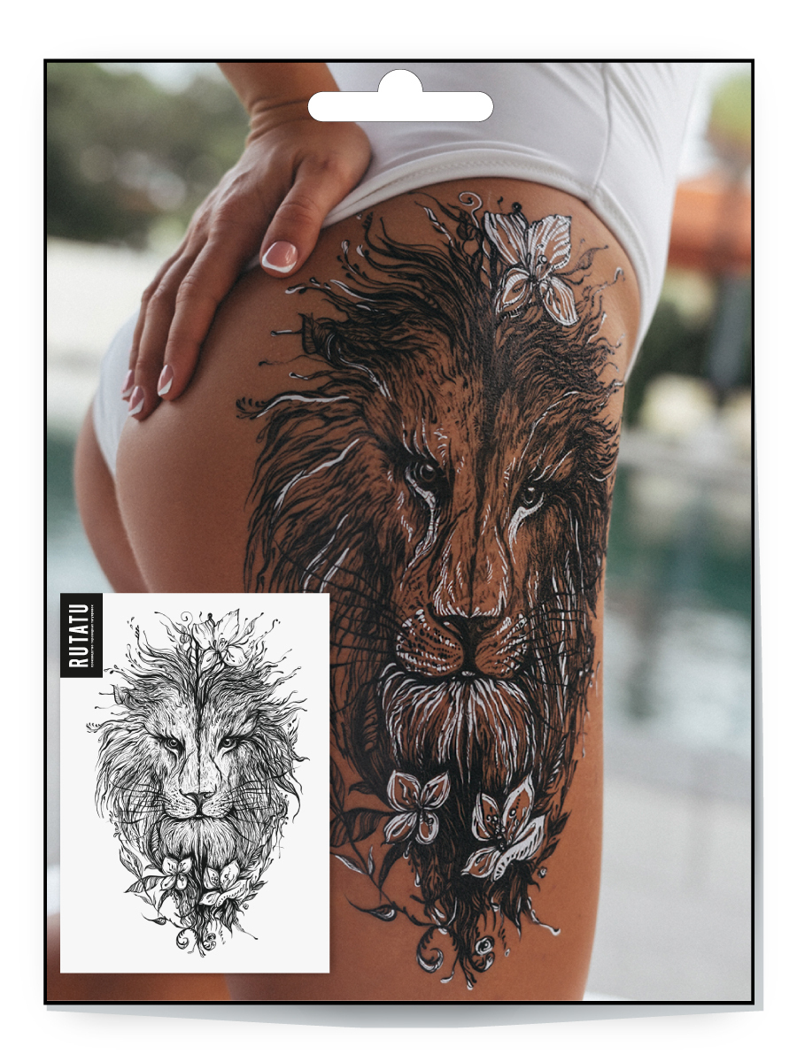 Временная переводная тату / наклейка переводилка / тату детские переводные / Татуировки Лев