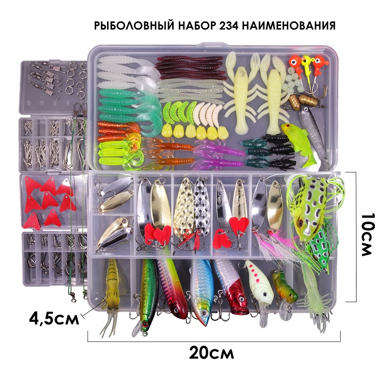 Набор для рыбалки, 234 в 1, цвета микс, 20х10х4,5 cм