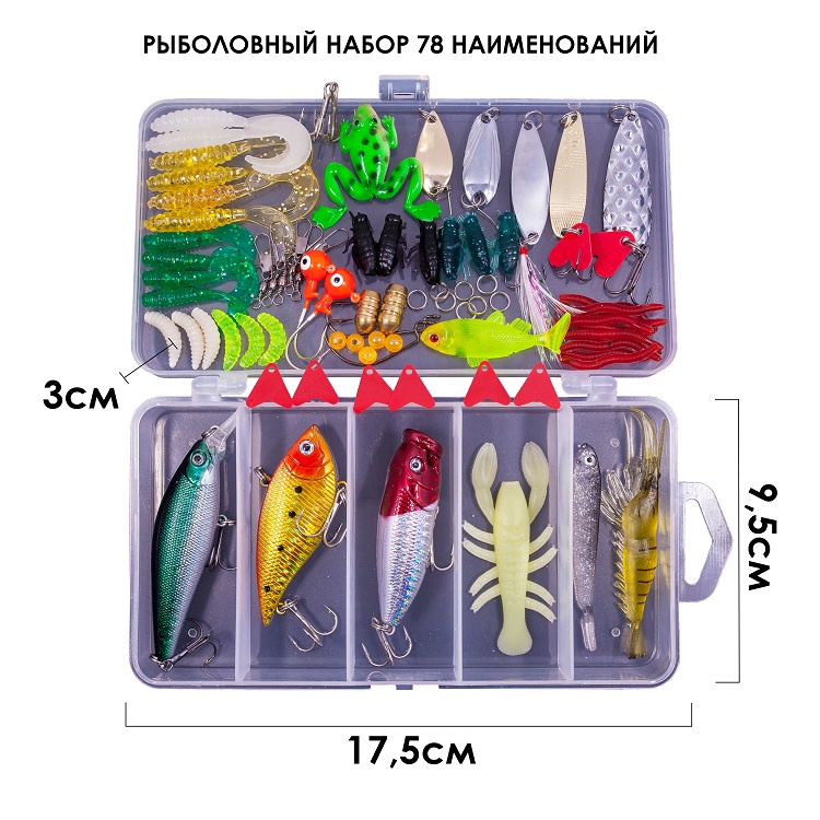 Набор для рыбалки, 78 в 1, цвета микс, 17,5х9,5х3 cм
