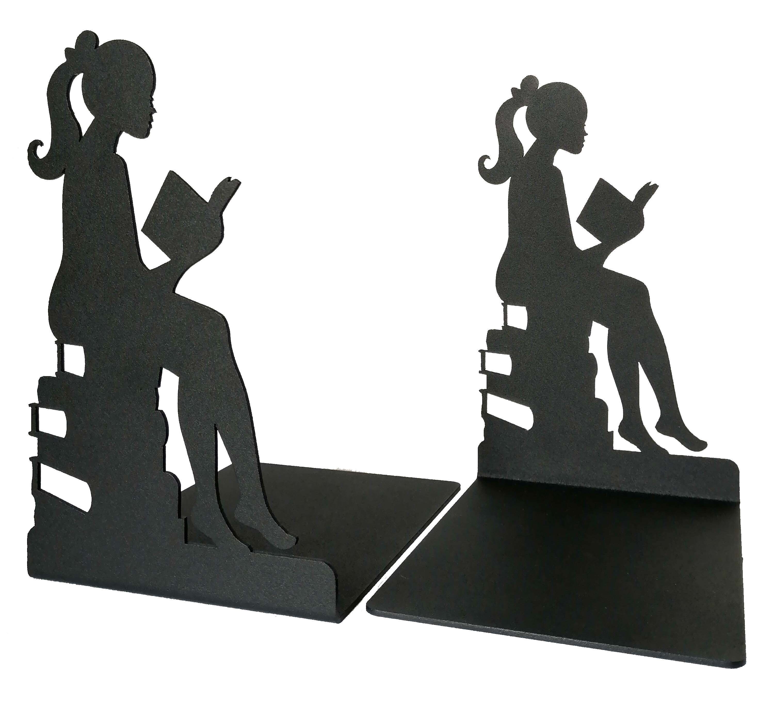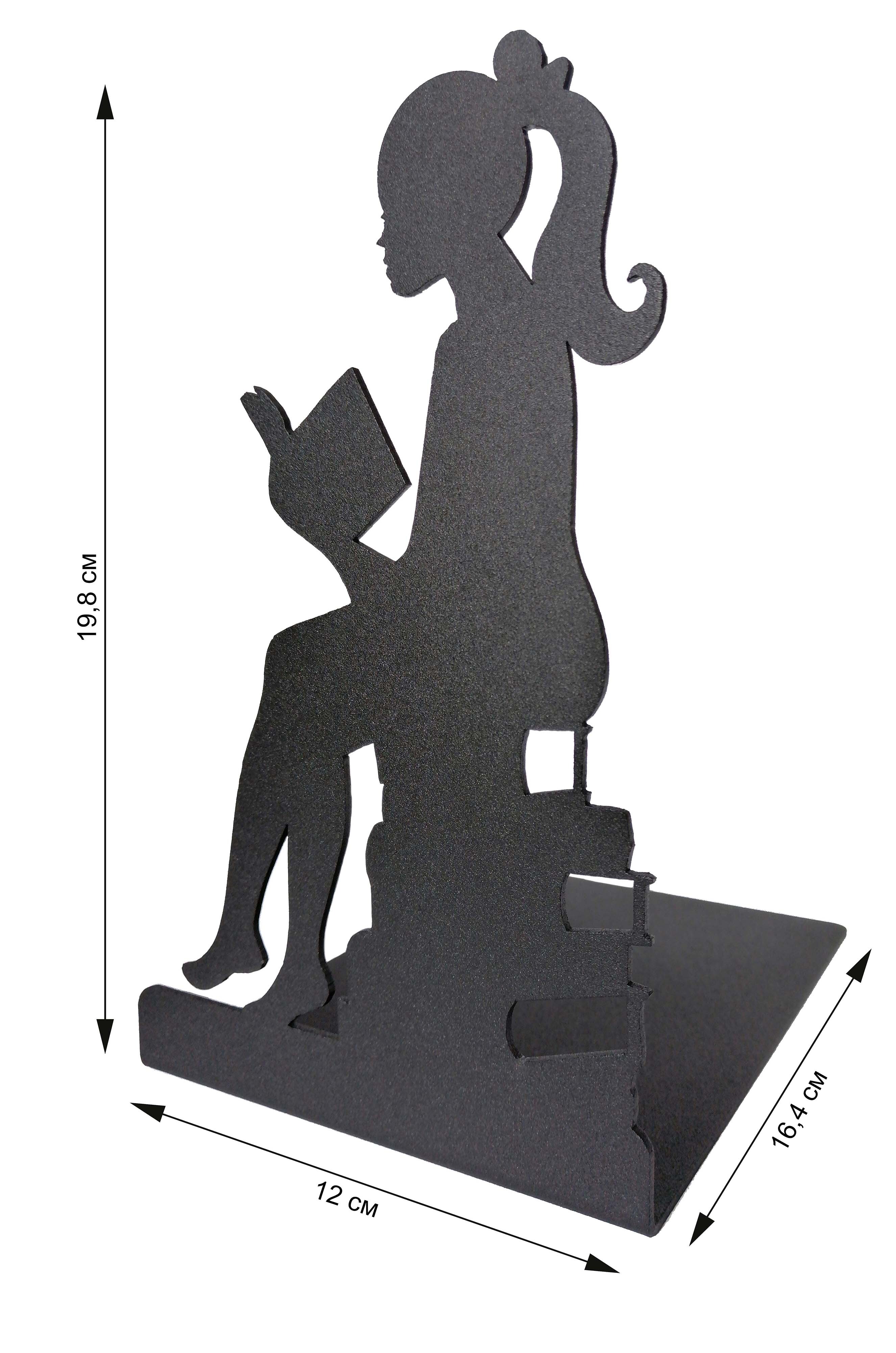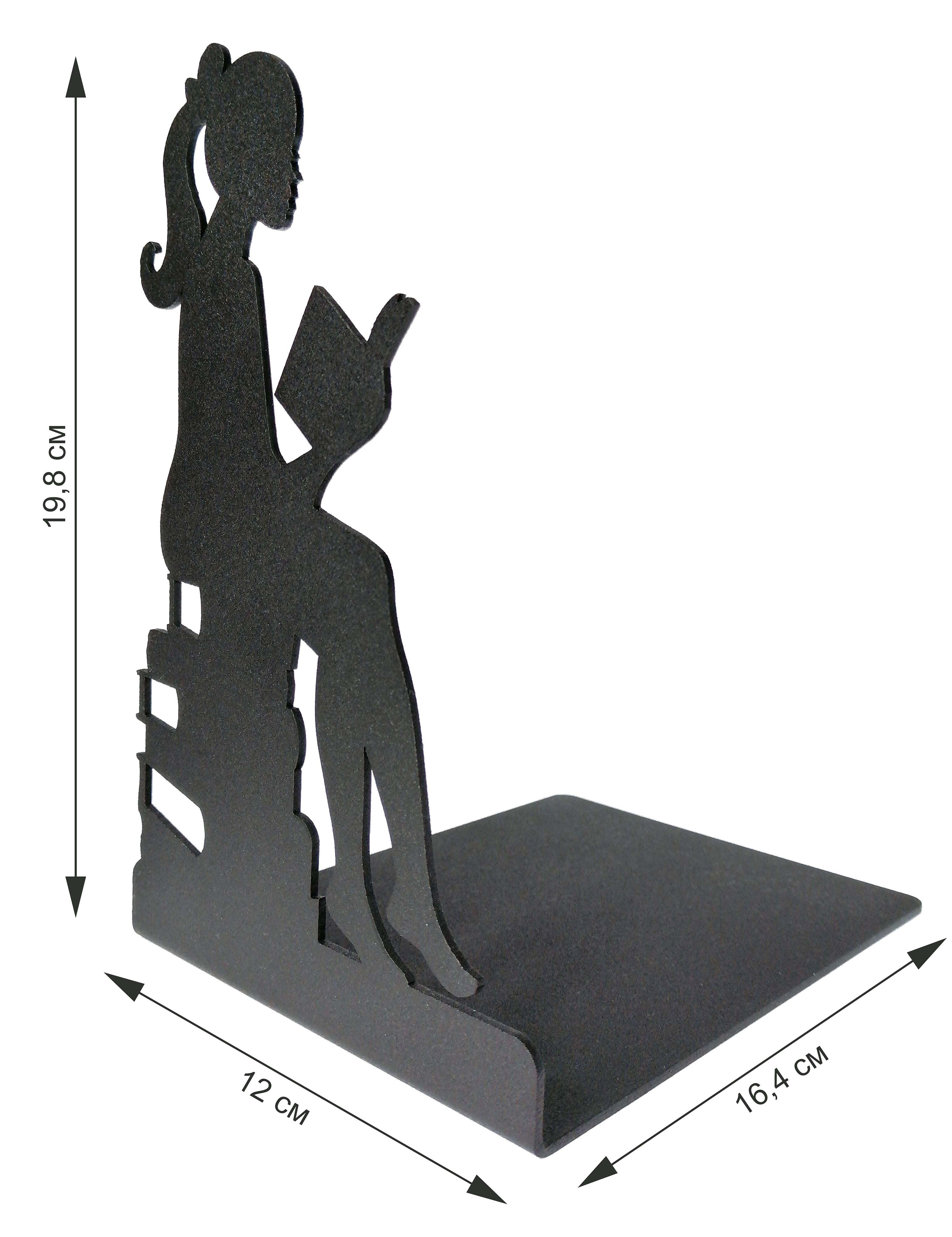 Подставка-ограничитель для книг "Девушка с книгой" 2 шт., металл, цвет чёрный