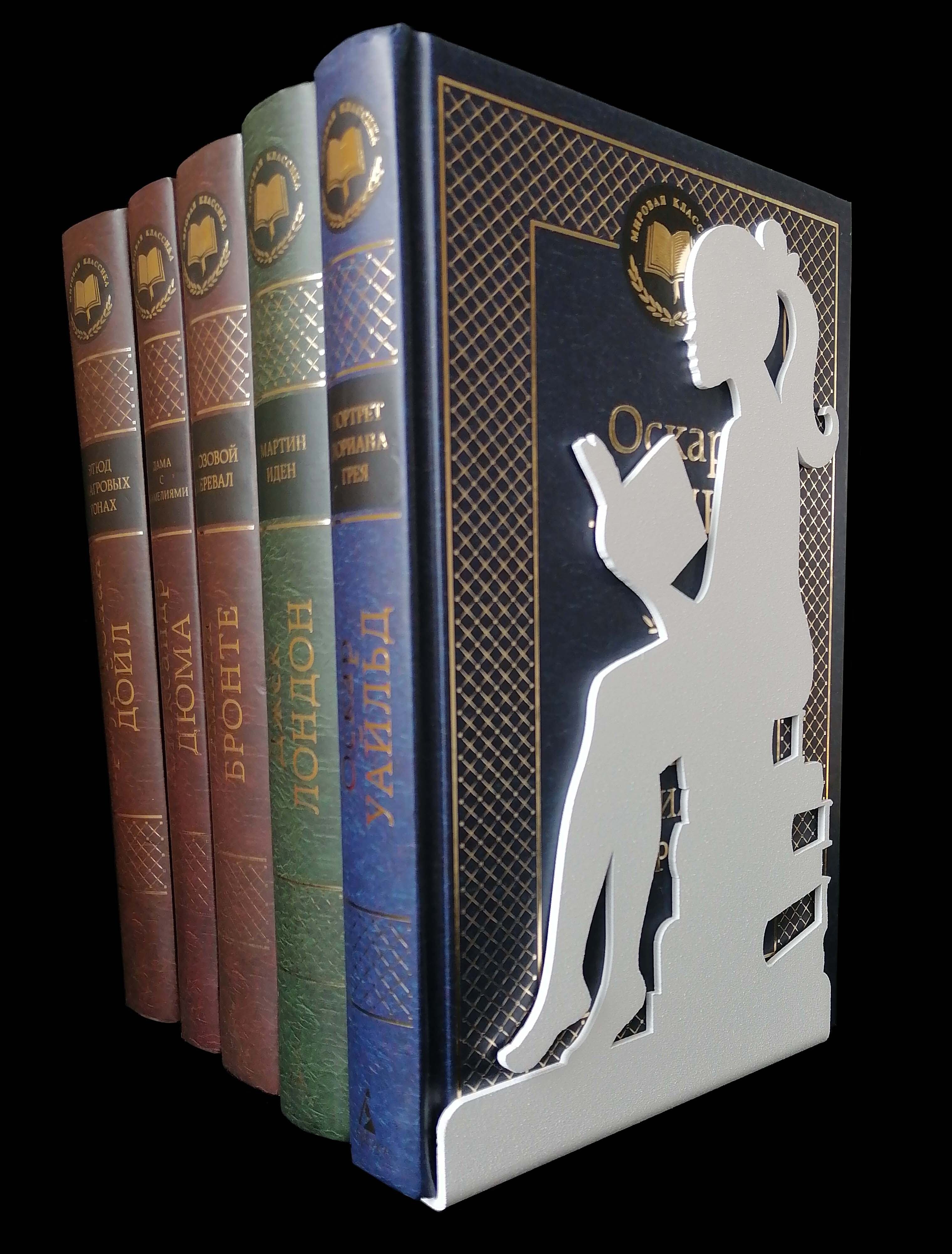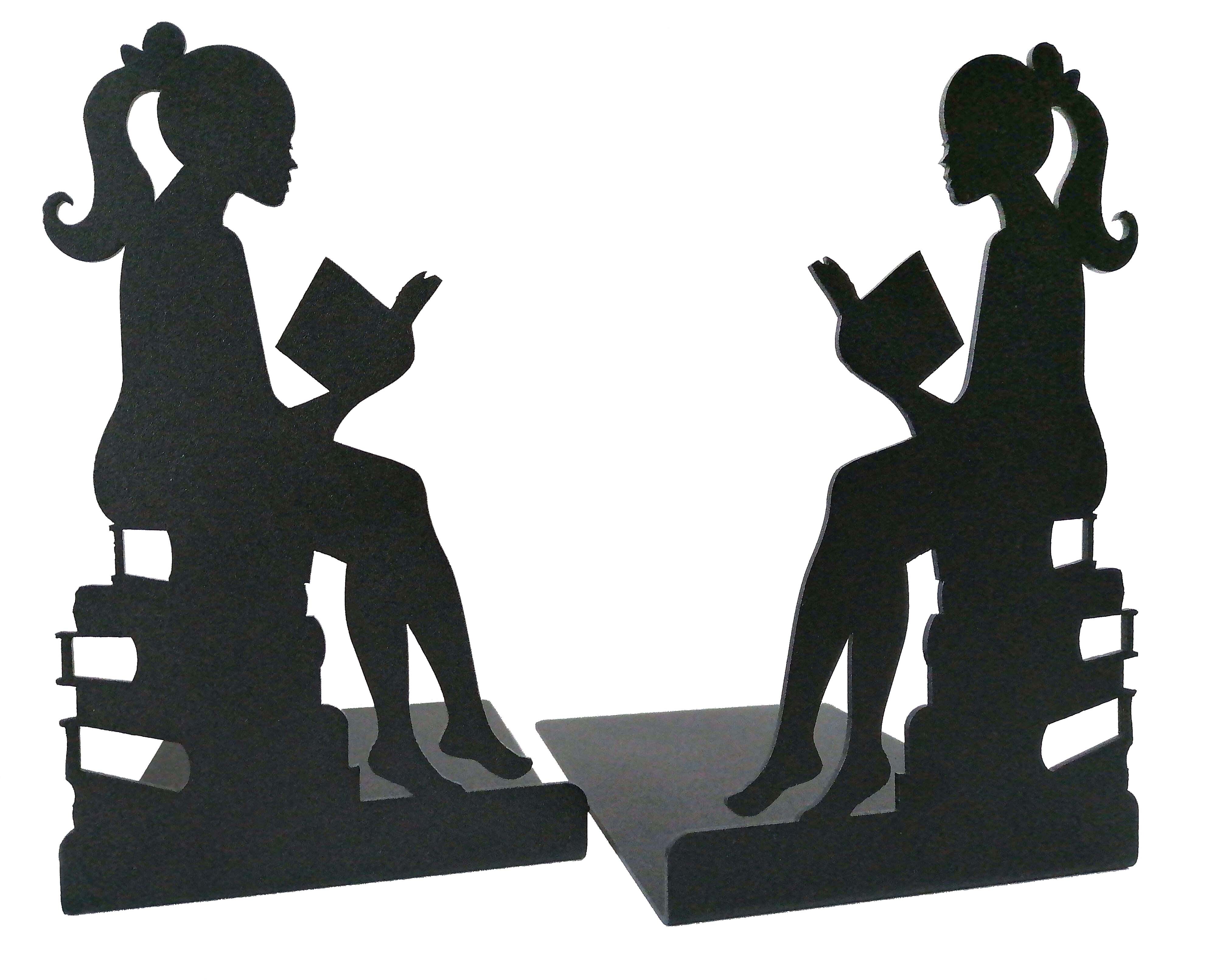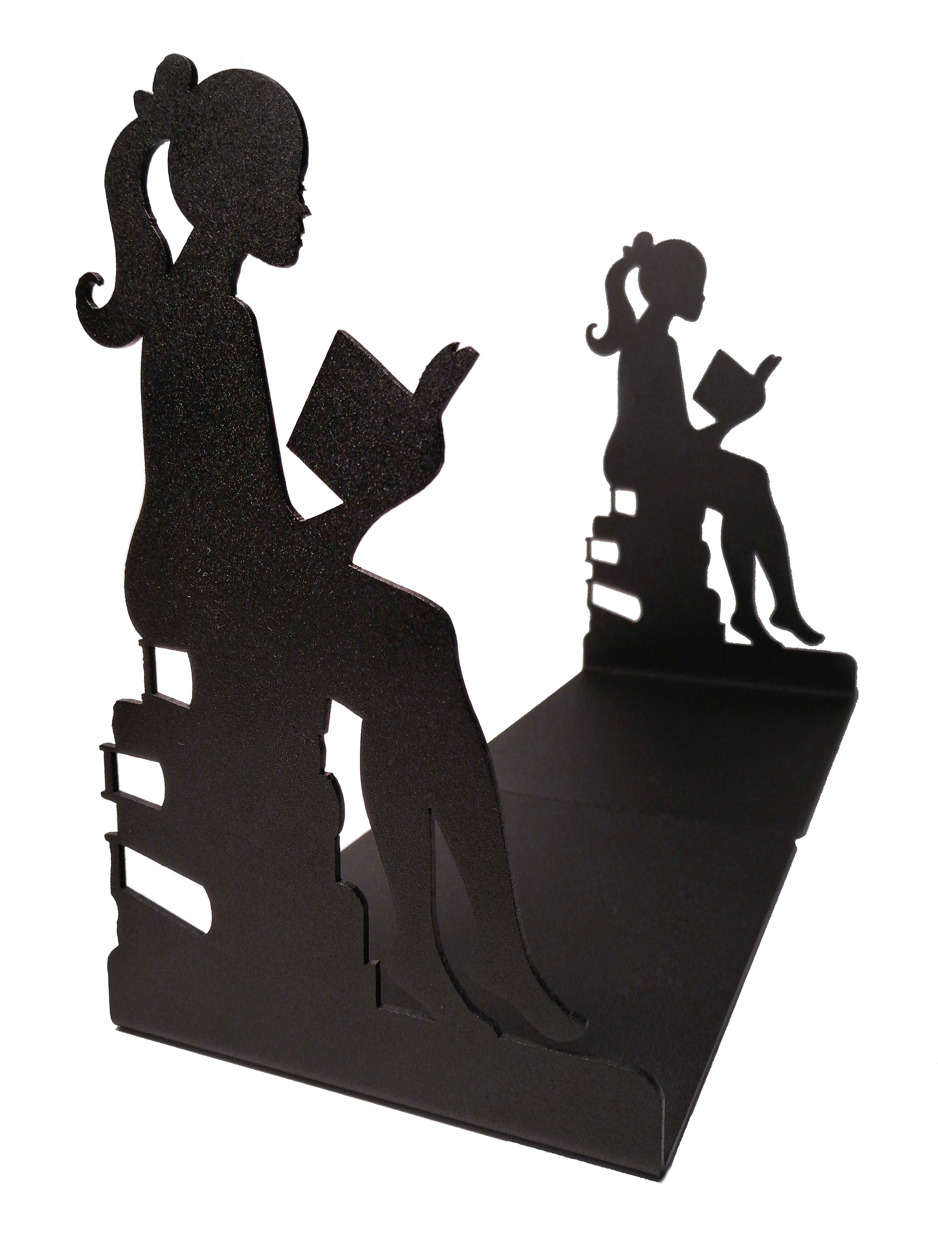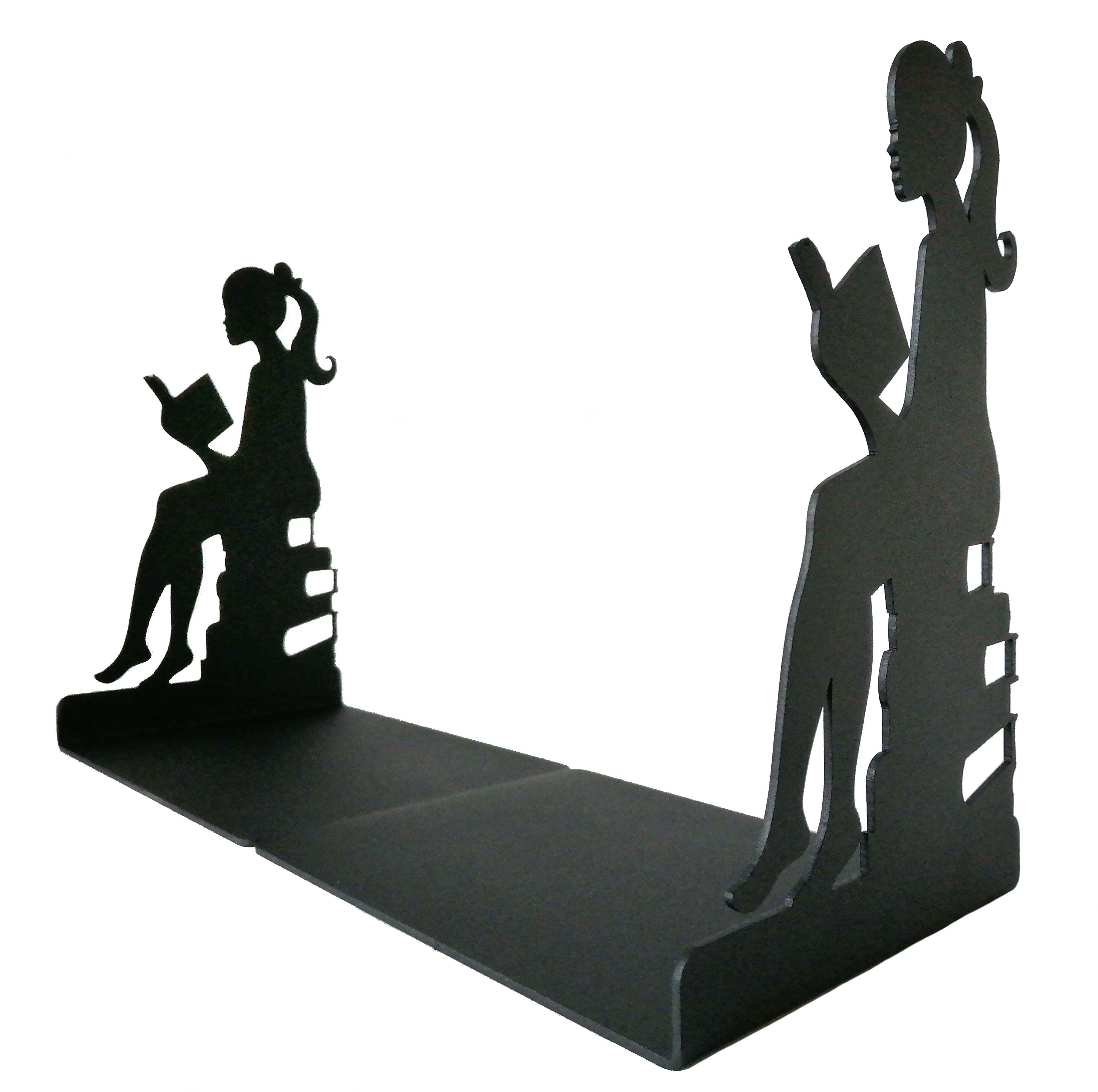 Подставка-ограничитель для книг "Девушка с книгой" 2 шт., металл, цвет чёрный