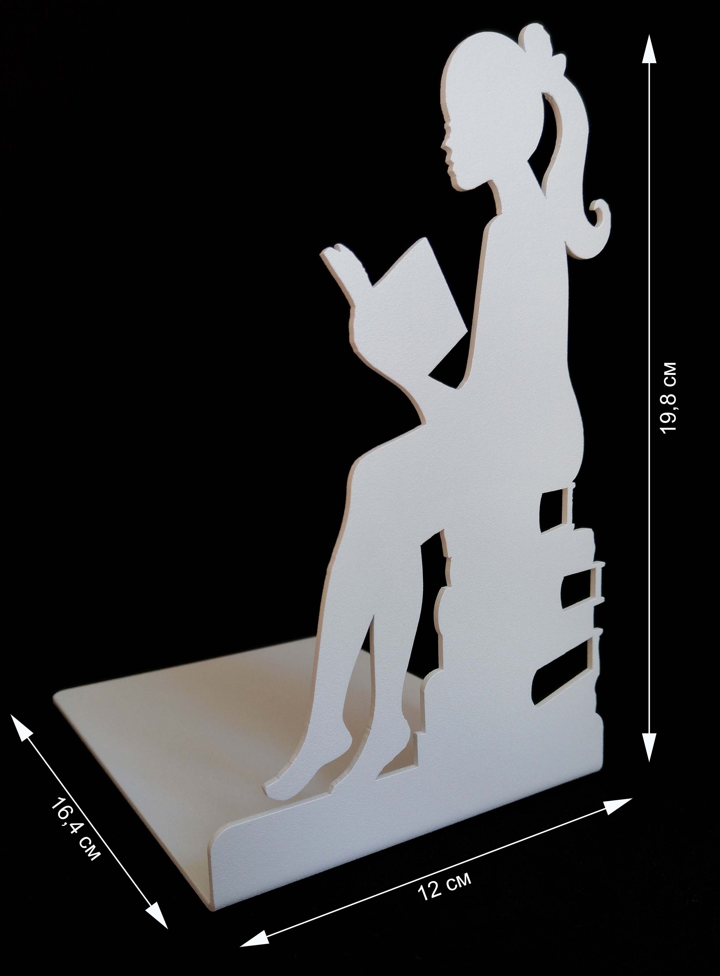 Подставка-ограничитель для книг "Девушка с книгой", металл, цвет белый, исполнение правое