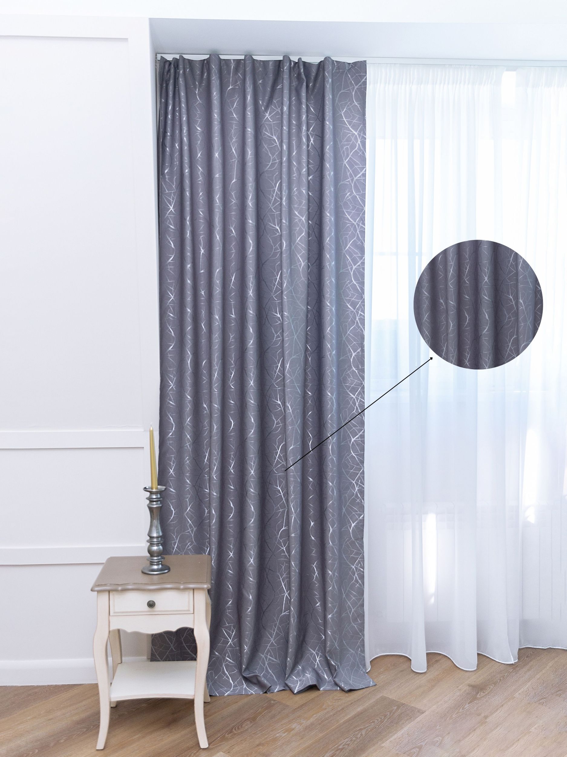 Портьера Рюшаль Софт жаккард темно-серый 2 шт. 270х200см, Севетлый металлик