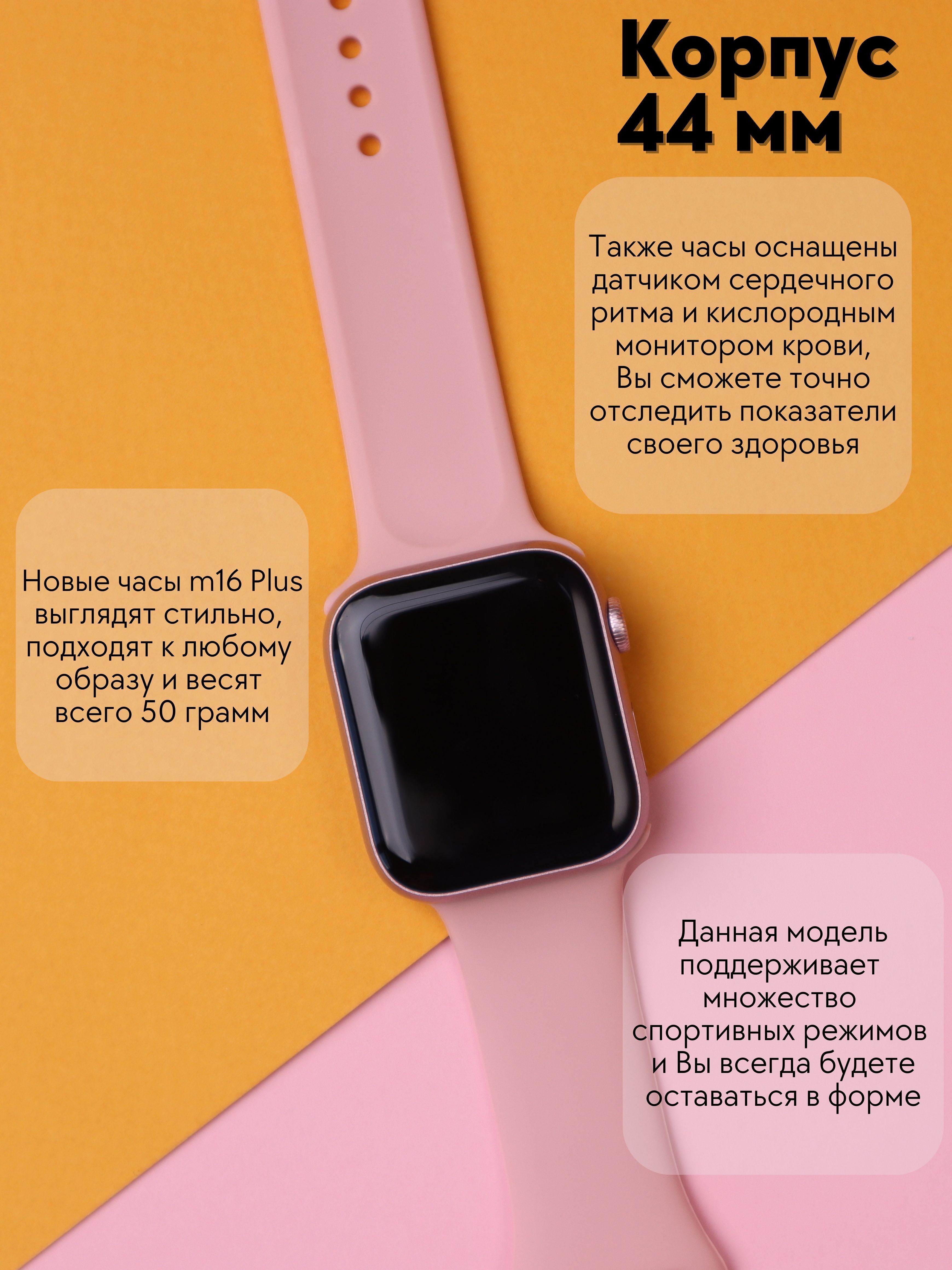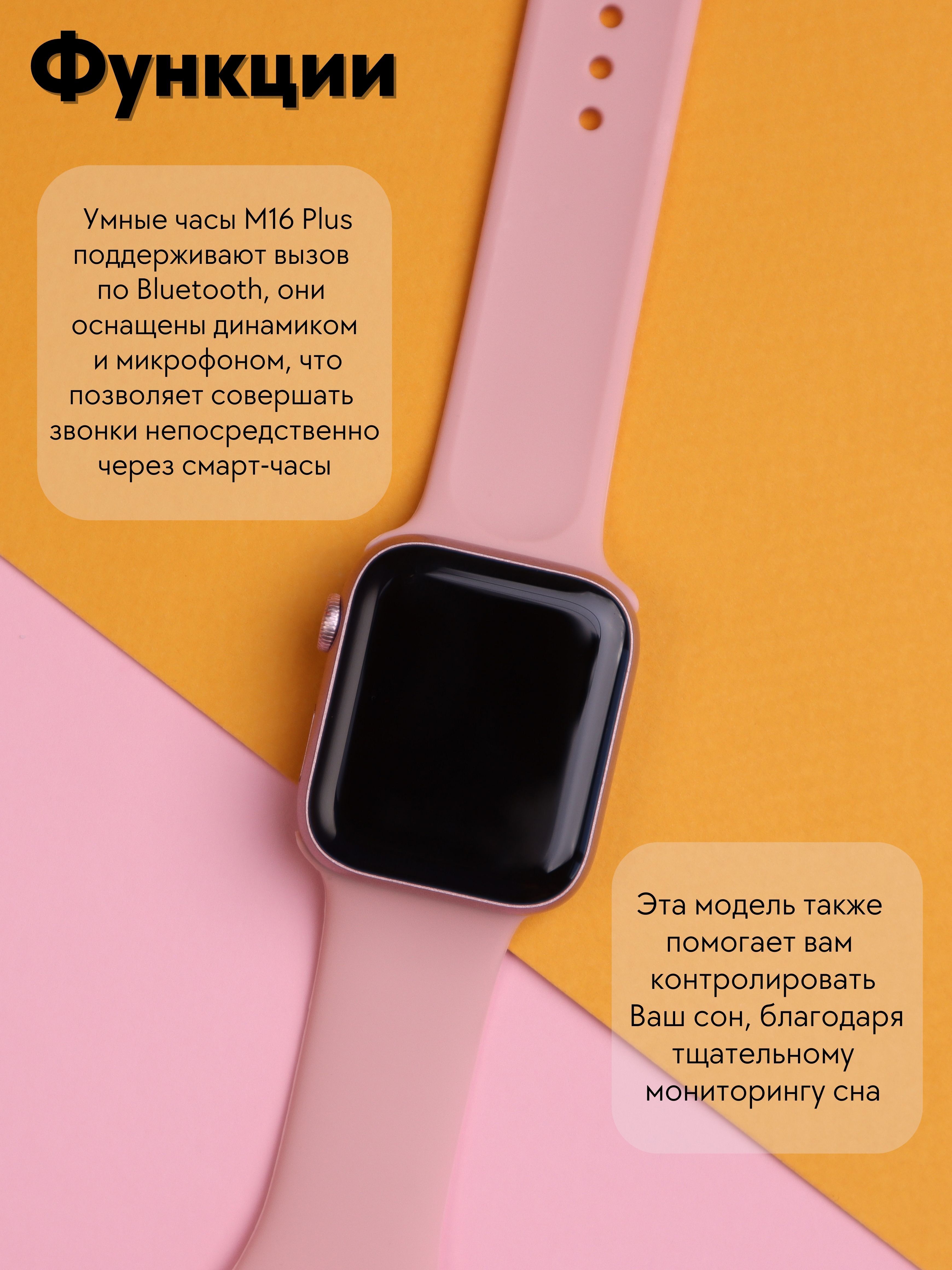 Умные часы S-Devices M16Plus, 44mm, розовый