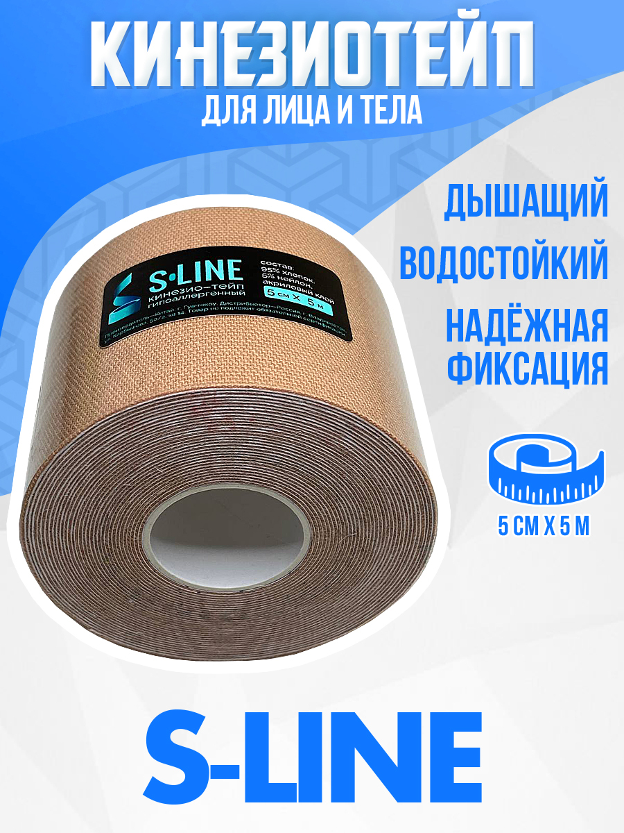 Кинезиотейп S-line кинейзио-тейп гипоаллергенный кинейзиотейп,кинейзио-тейп4 5см Х 4.5 м, бежевый
