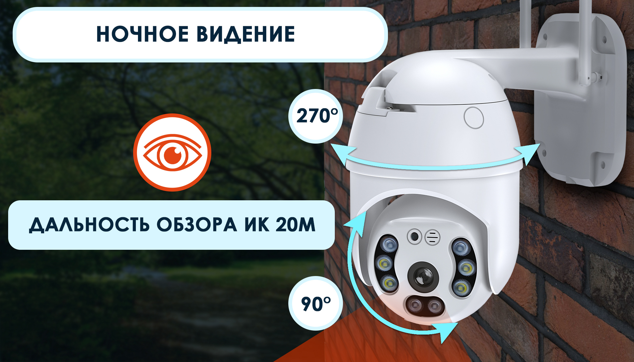 Уличная ip камера видеонаблюдения / Наружная, скрытая, поворотная wifi видеокамера с микрофоном для дома