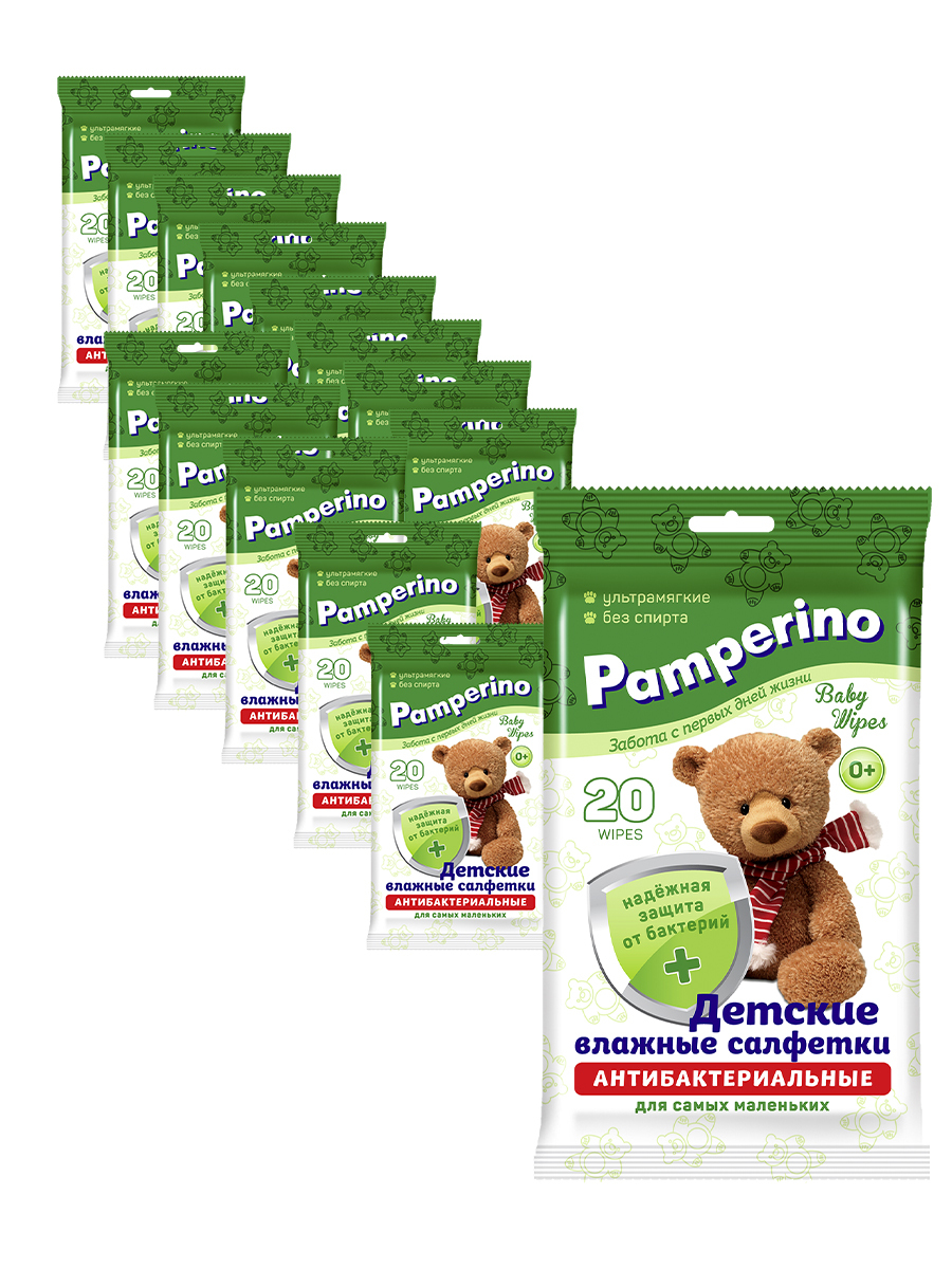 Влажные салфетки детские Pamperino №20 антибактериальные, в наборе из 14 упаковок