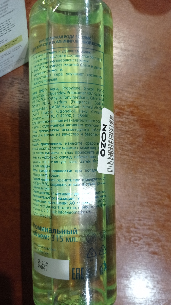 САЛИЦИНК Мицелярная вода для жирной и комбинированной кожи 315 мл