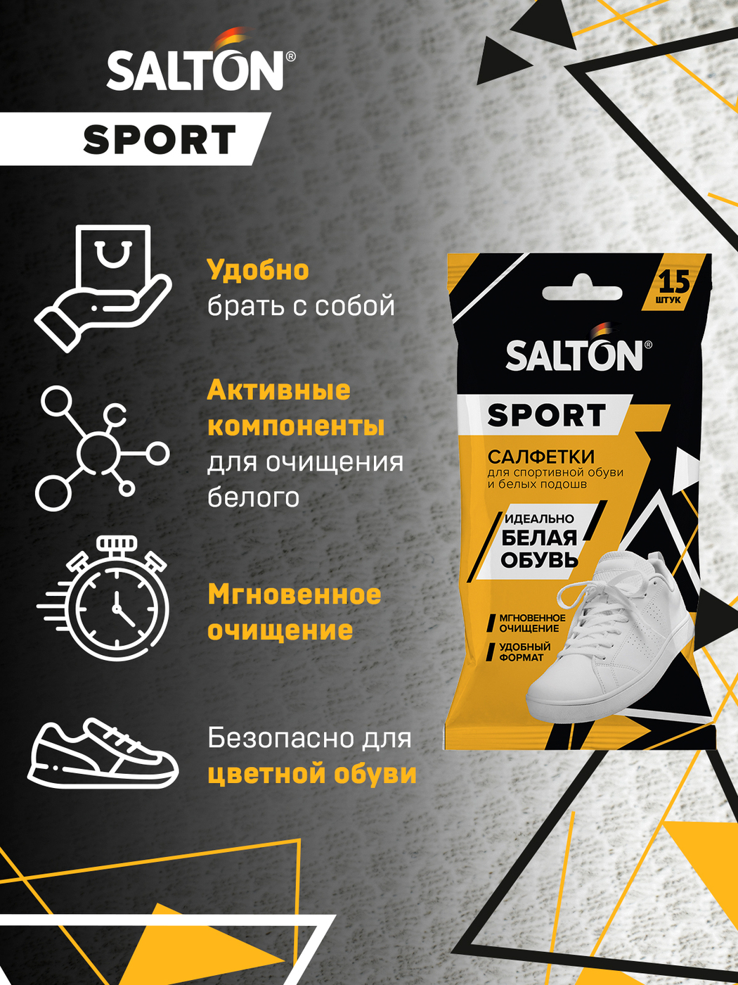 Влажные салфетки для очищения белой обуви и подошв, SALTON Sport 3 уп. х 15 шт