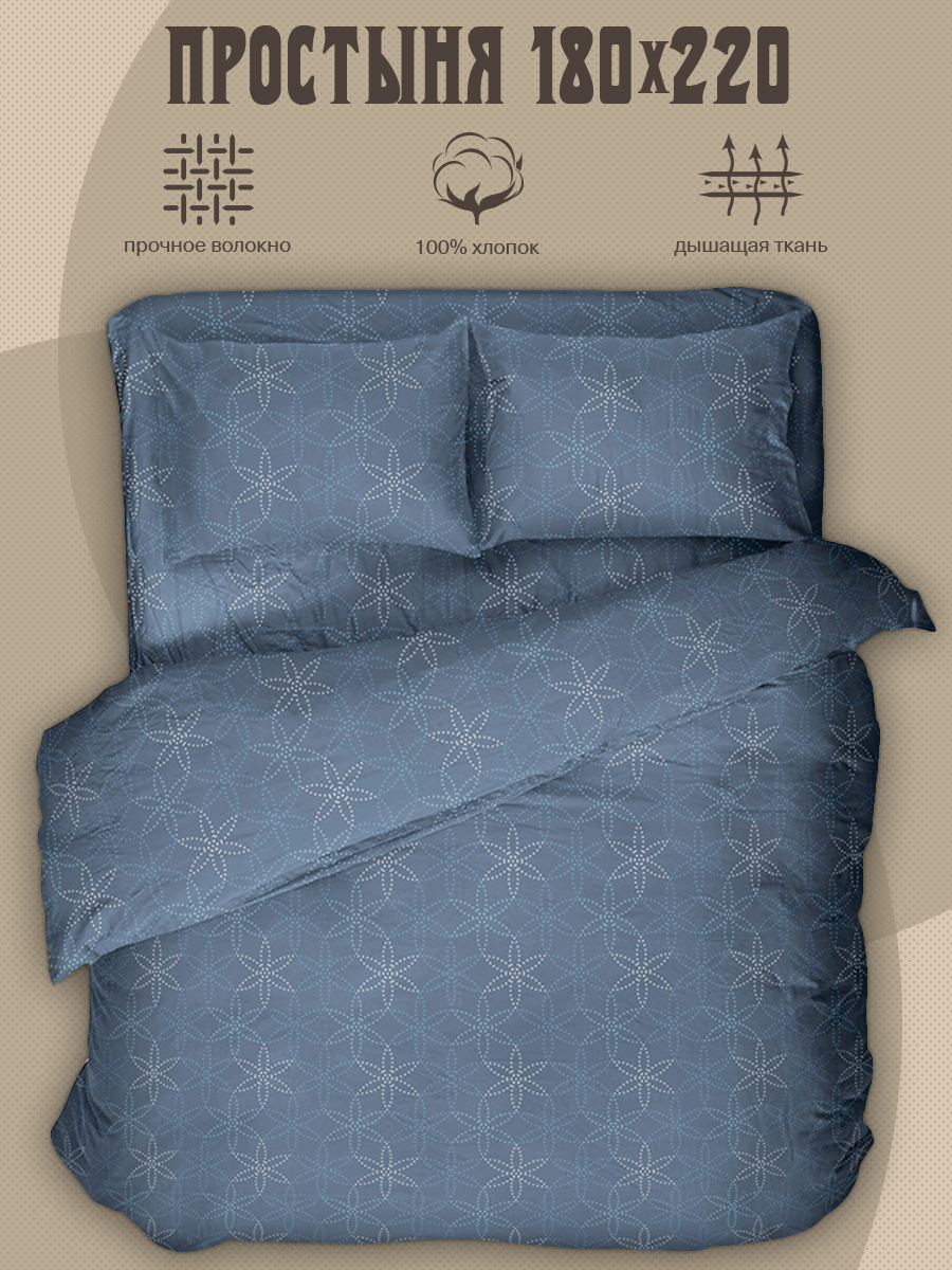 Простыня Самойловский текстиль Сапфир Бязь, 180x220, темно-синий
