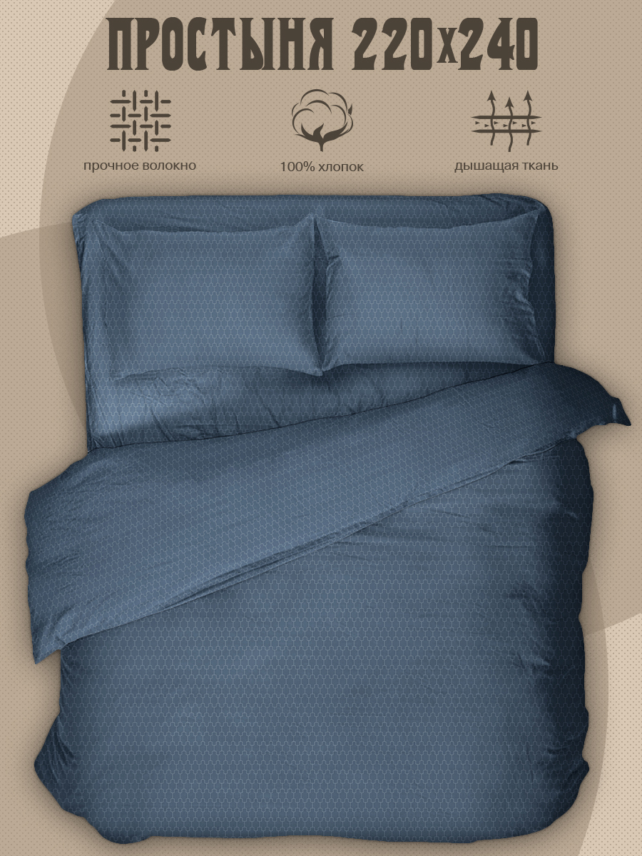Простыня Самойловский текстиль Комфорт Бязь, 220x240, темно-синий