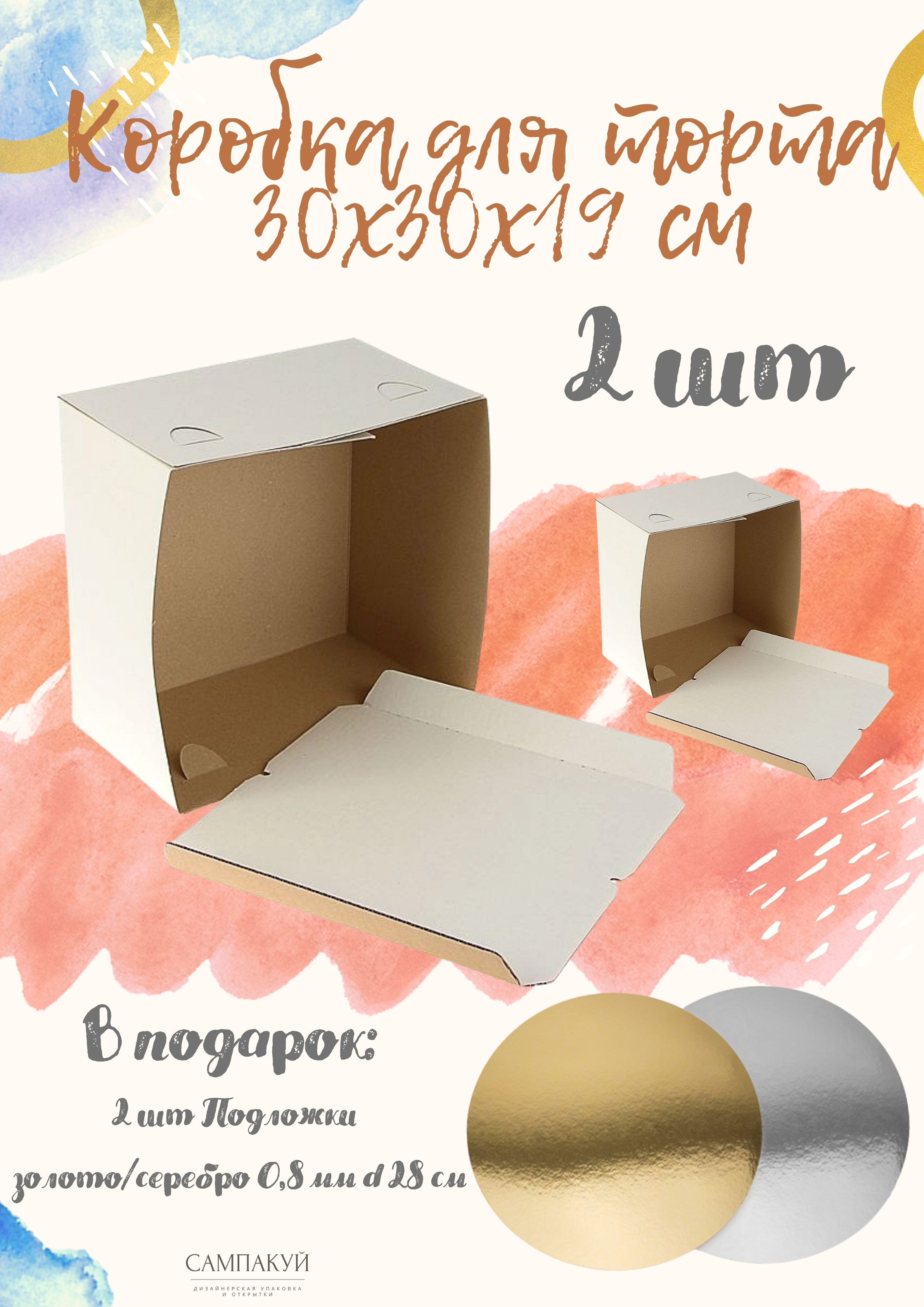 Коробка для торта СамПакуй, 30х30х19 см, 1 шт