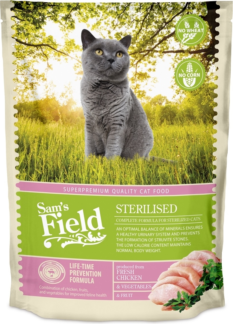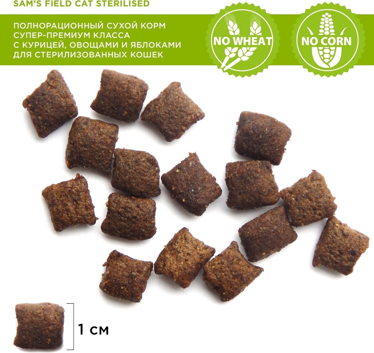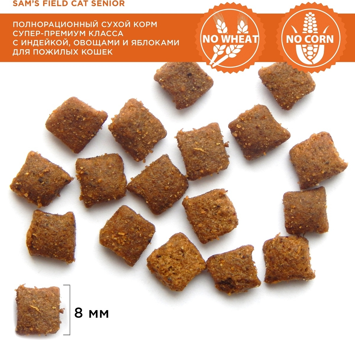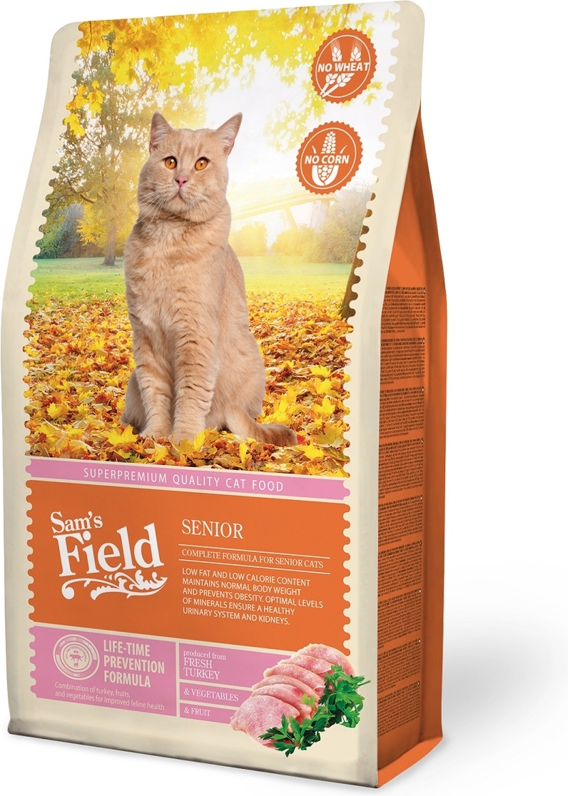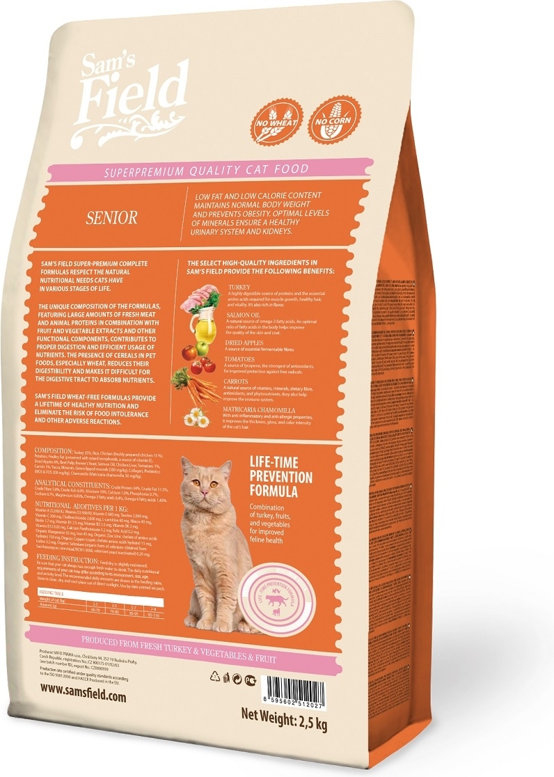 Корм сухой Sam's Field, для пожилых кошек, с индейкой, овощами и яблоками, 2,5 кг