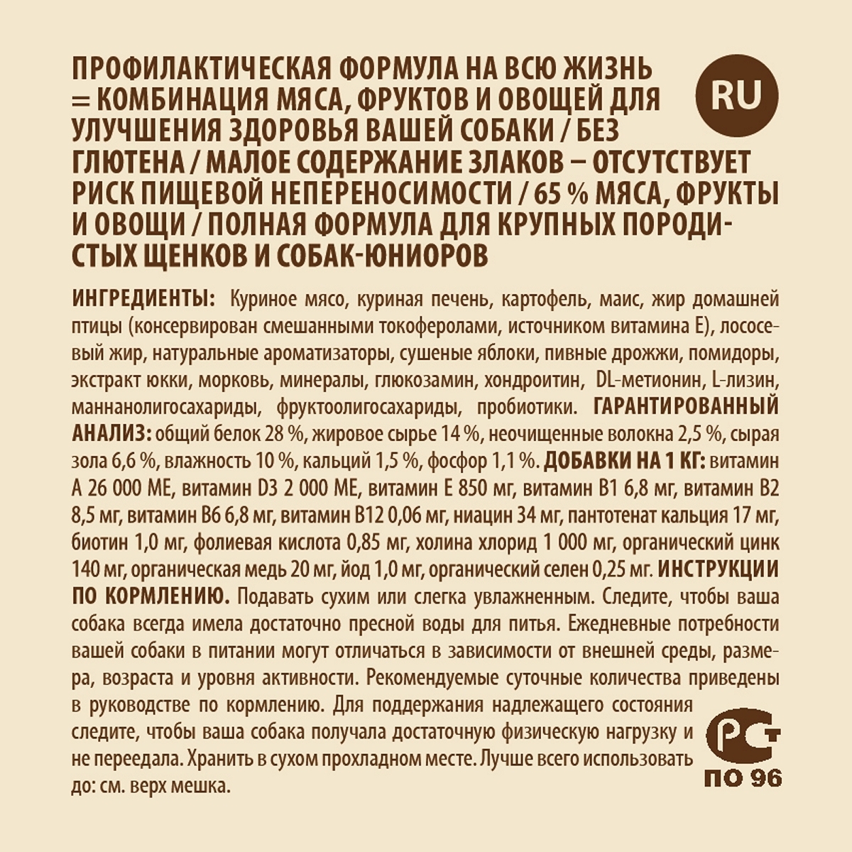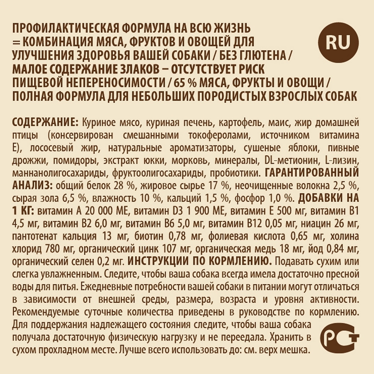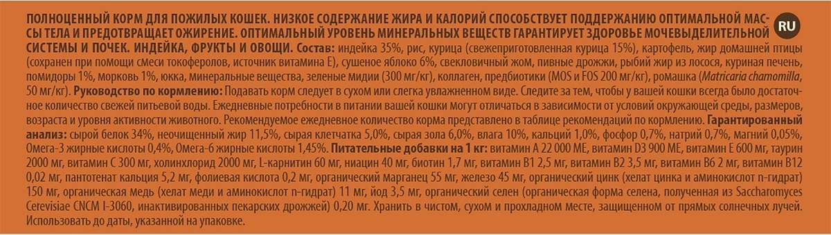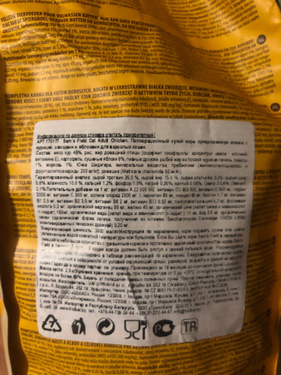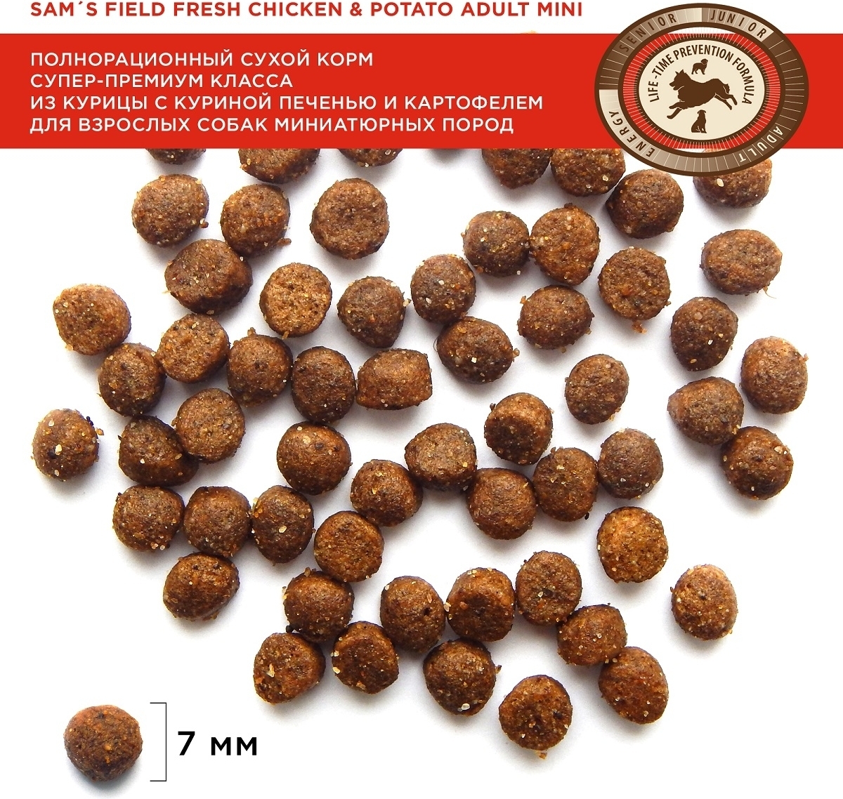 Корм сухой Sam's Field, для пожилых кошек, с индейкой, овощами и яблоками, 2,5 кг