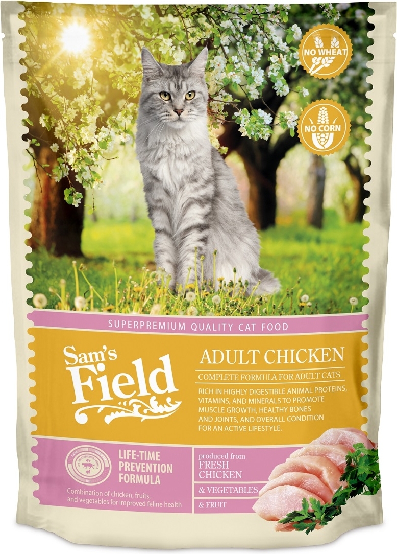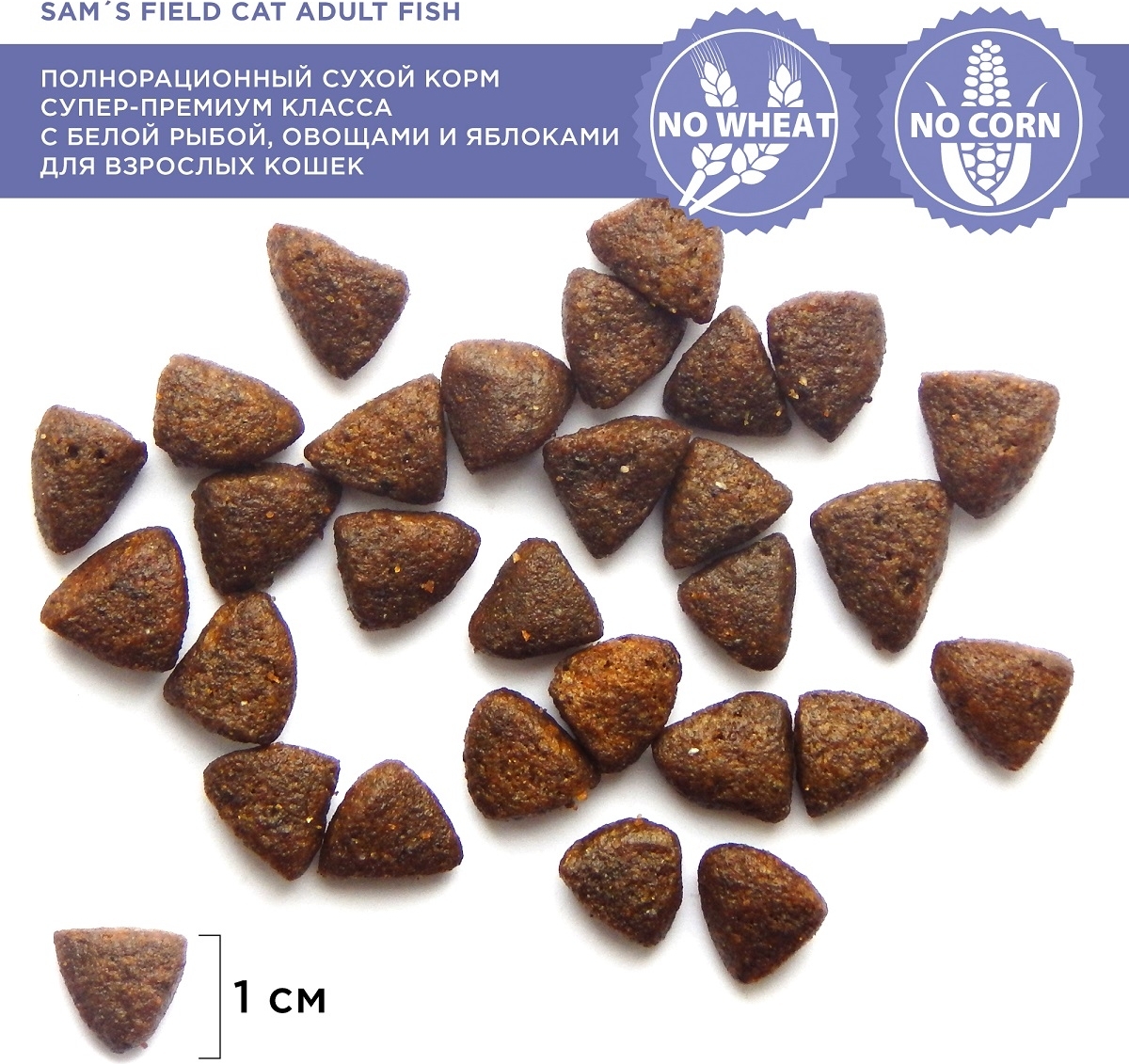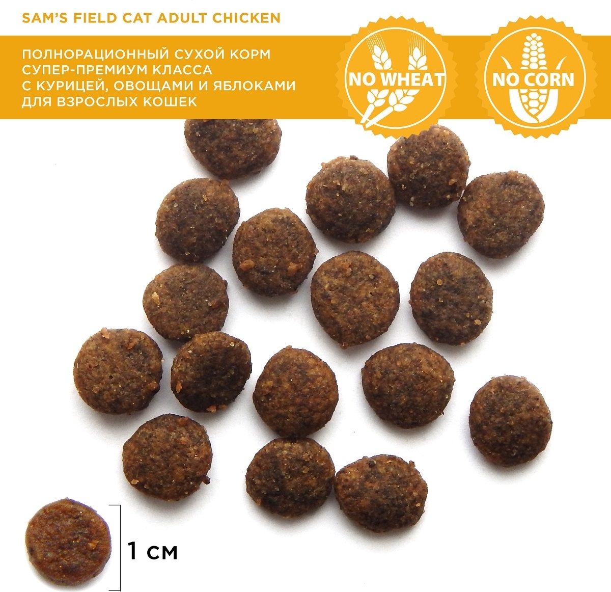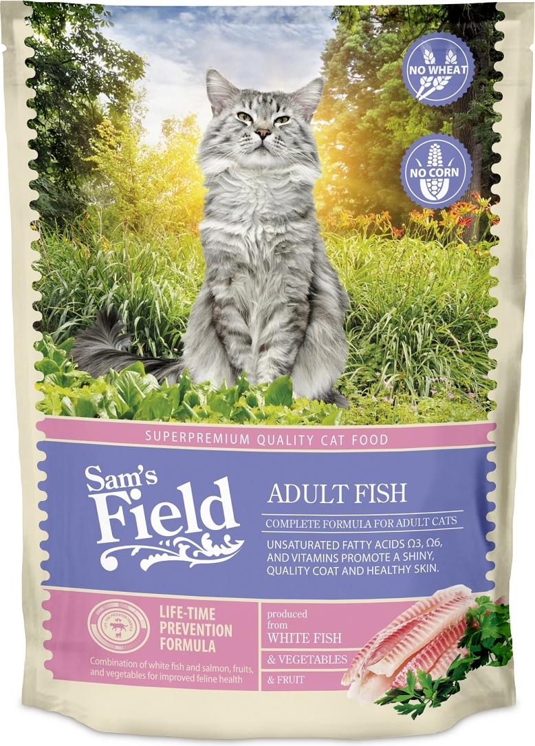 Корм сухой Sam's Field, для взрослых кошек, с белой рыбой, овощами и яблоками, 400 г
