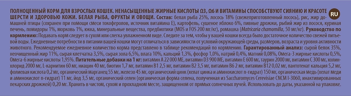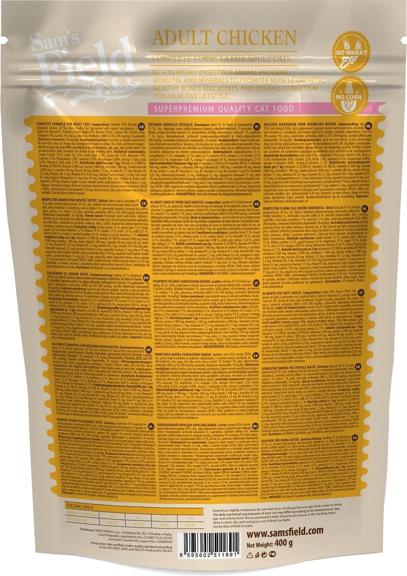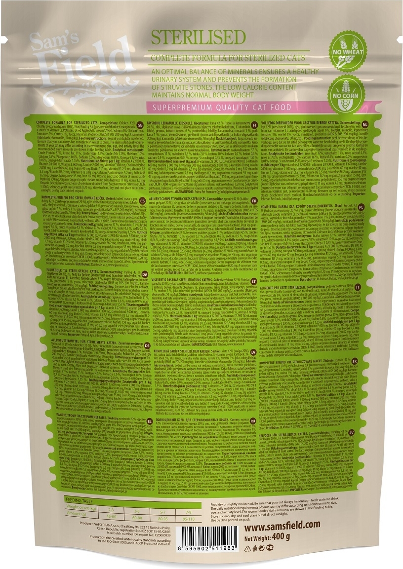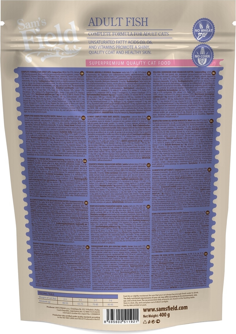 Корм сухой Sam's Field, для взрослых кошек, с белой рыбой, овощами и яблоками, 400 г