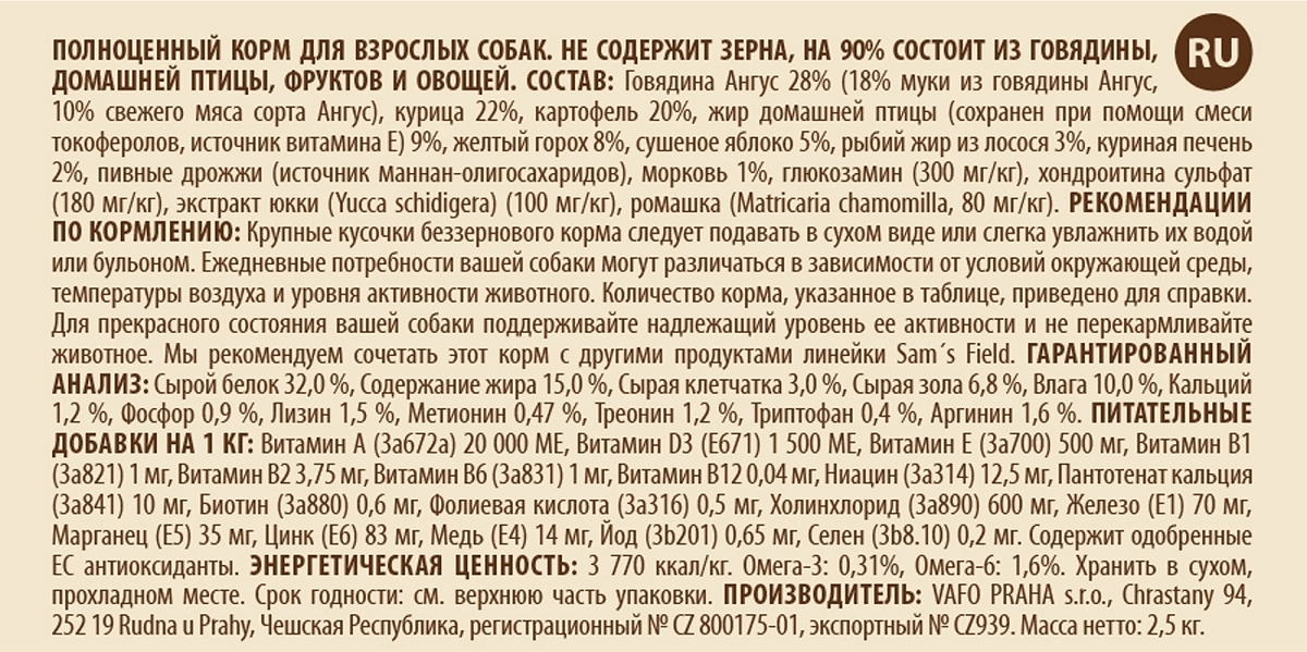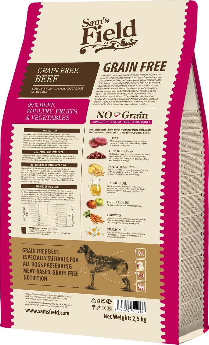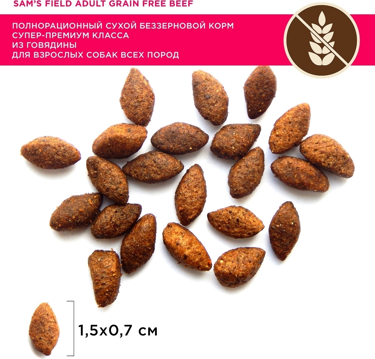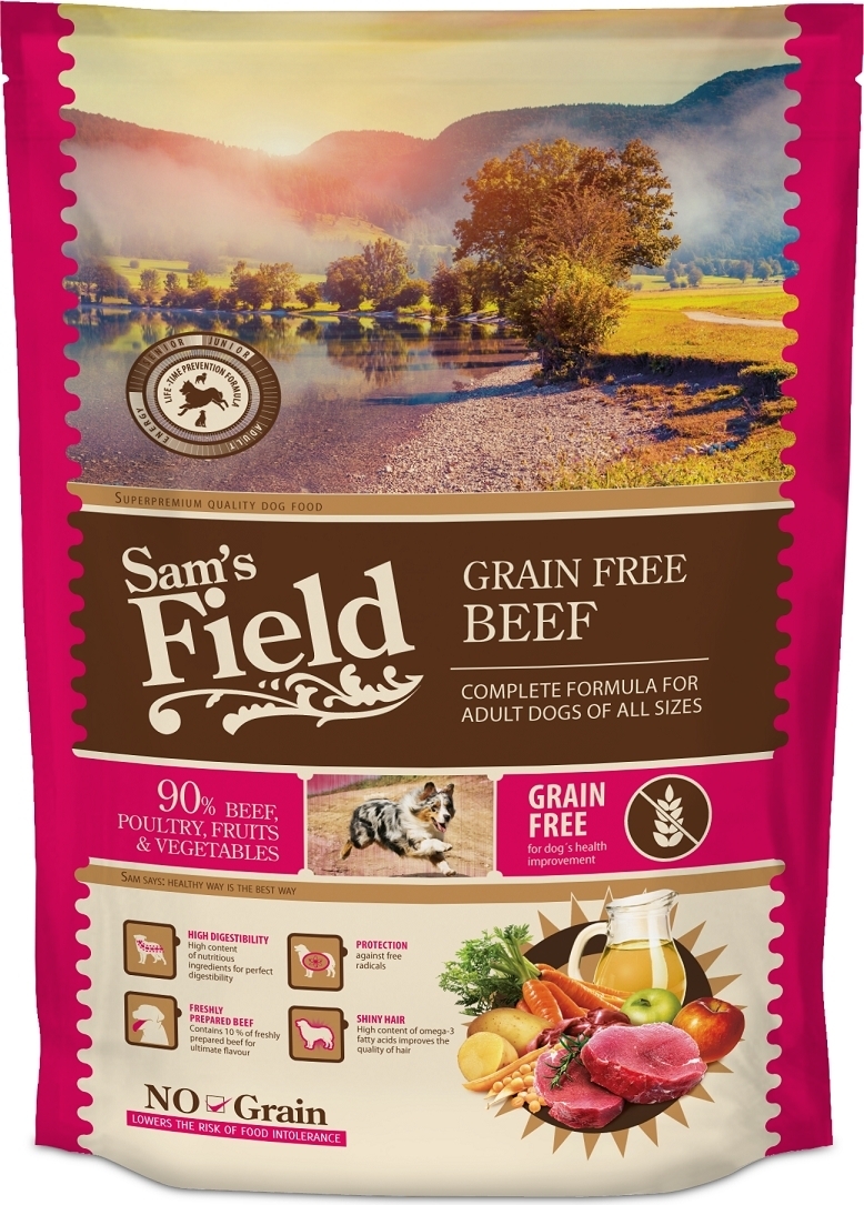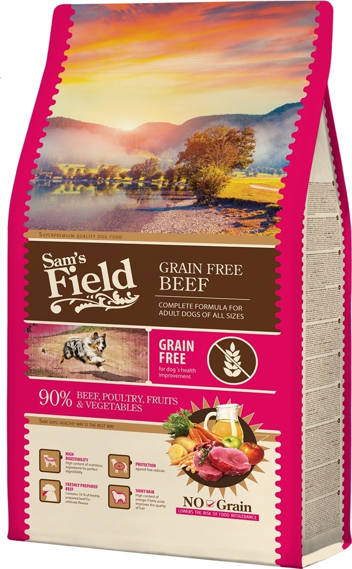 Корм сухой Sam´s Field беззерновой, для взрослых собак всех пород, из говядины, 2,5 кг