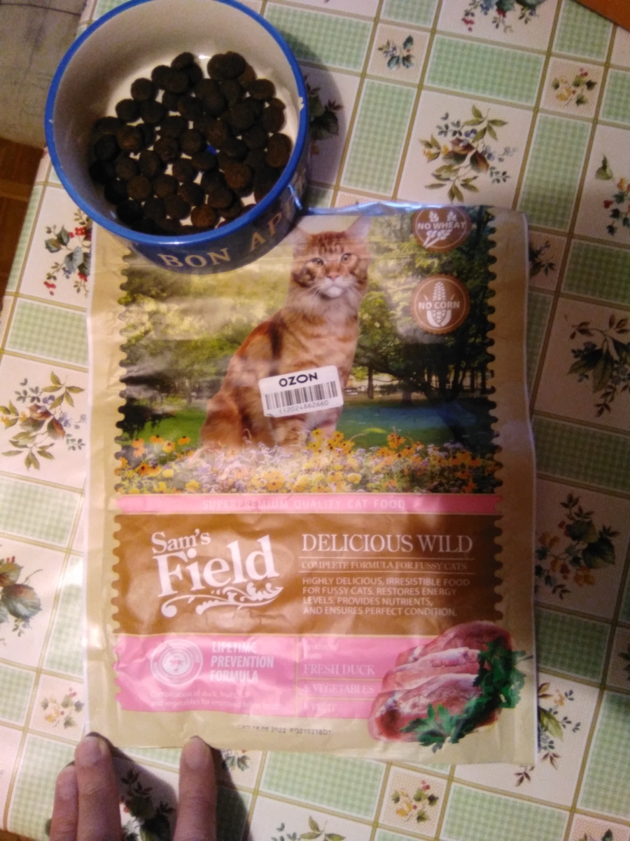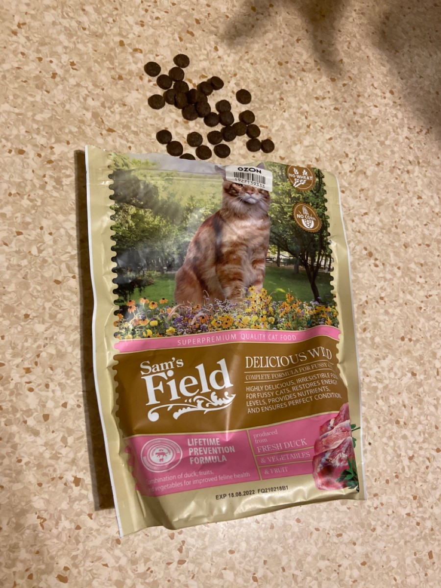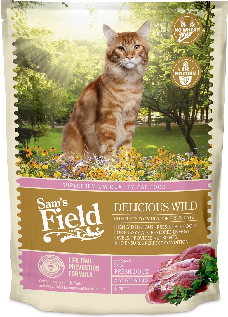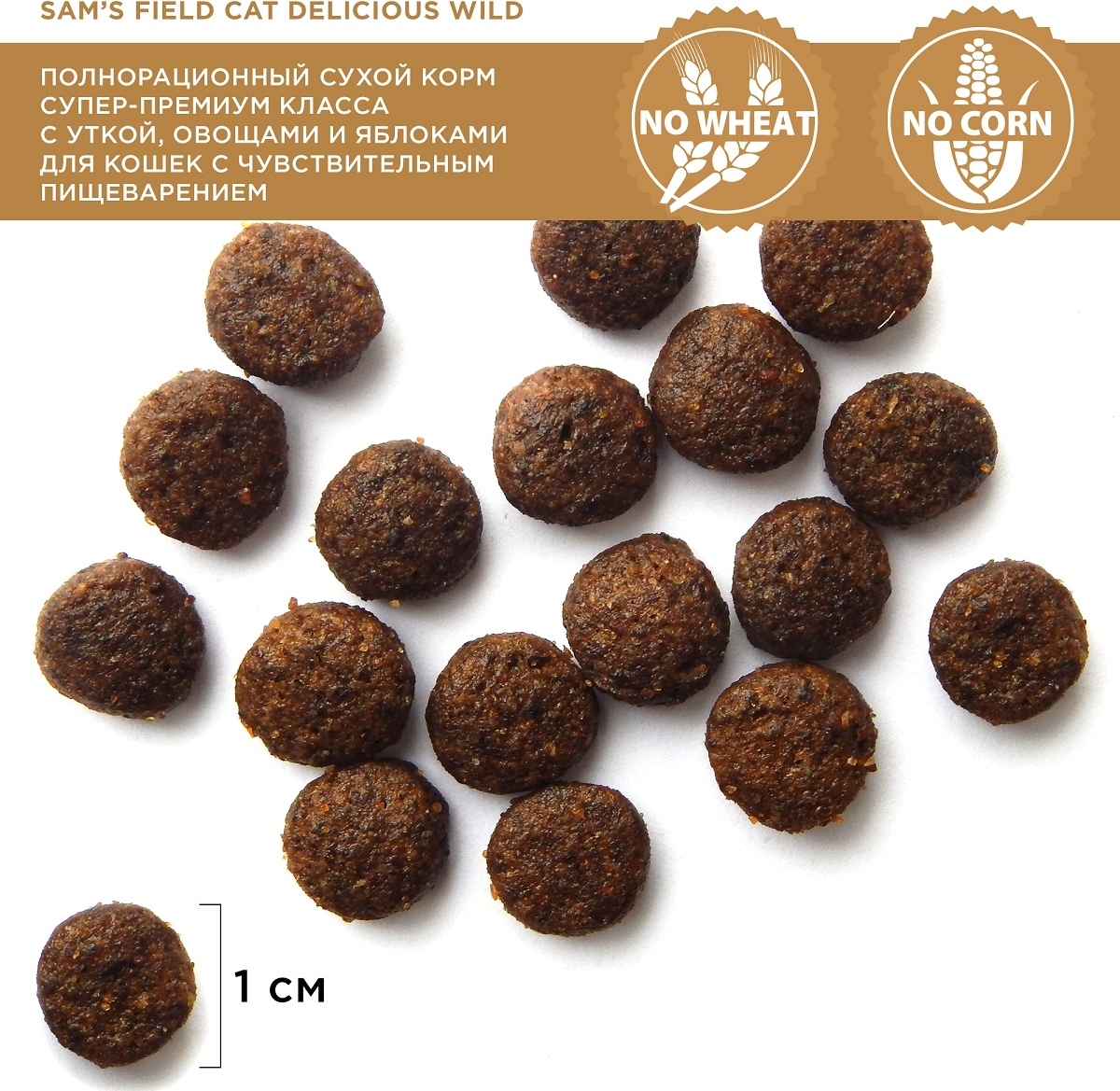 Корм сухой Sam's Field, для кошек с чувствительным пищеварением, с уткой, овощами и яблоками, 400 г