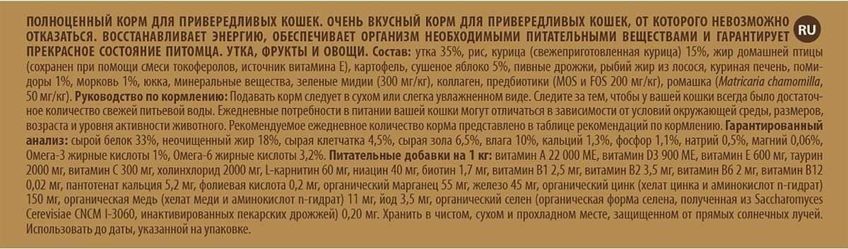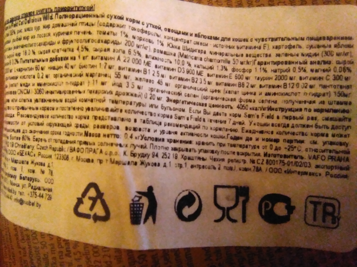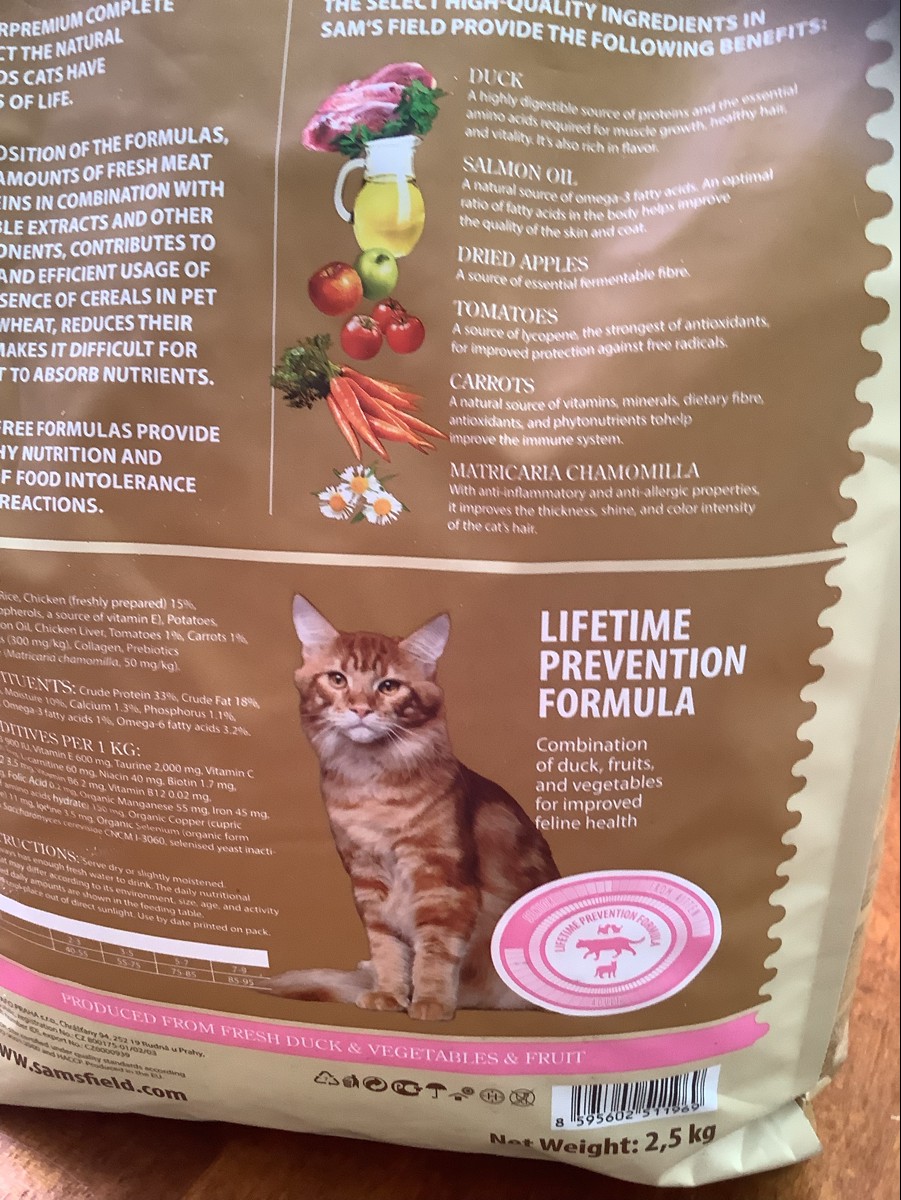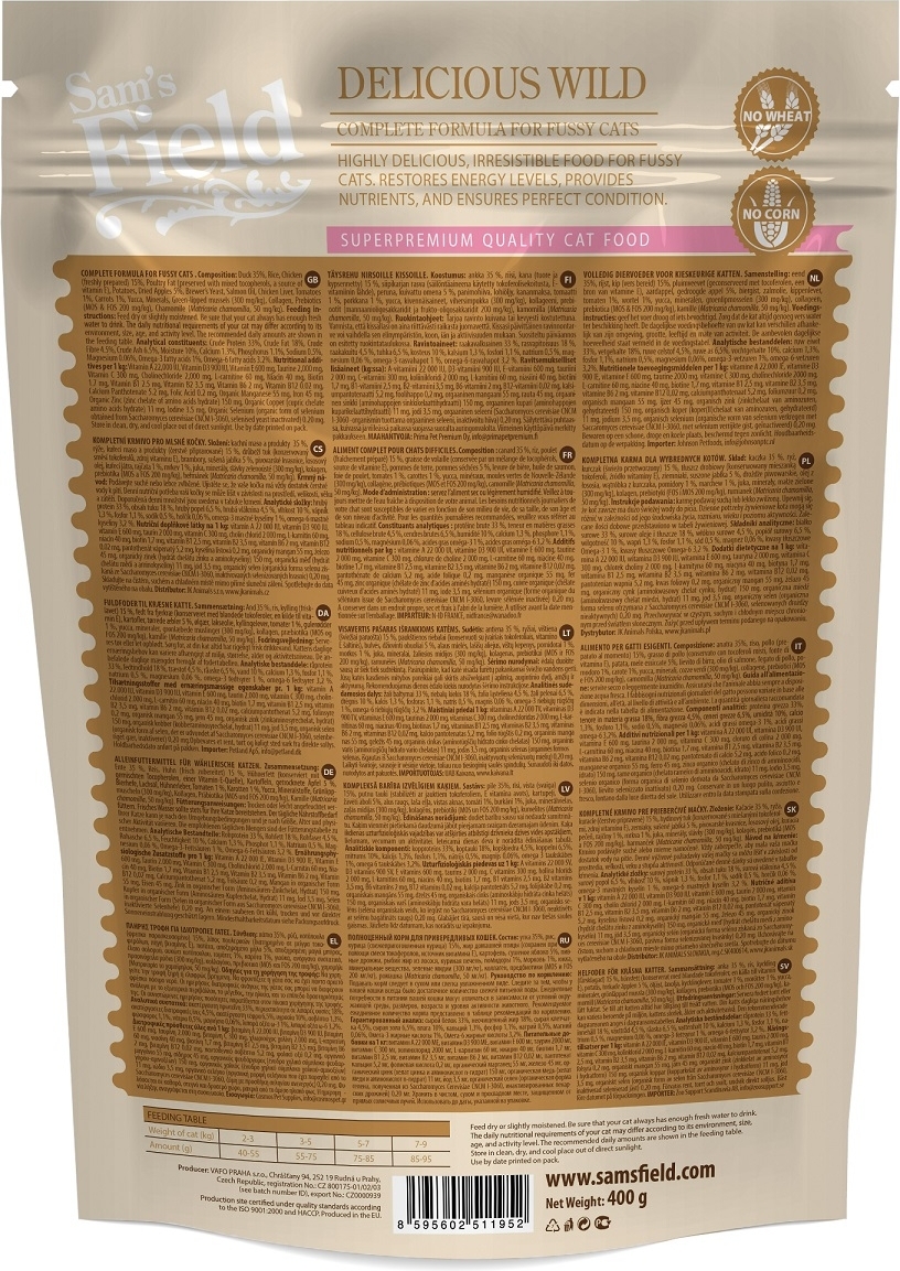 Корм сухой Sam's Field, для кошек с чувствительным пищеварением, с уткой, овощами и яблоками, 400 г