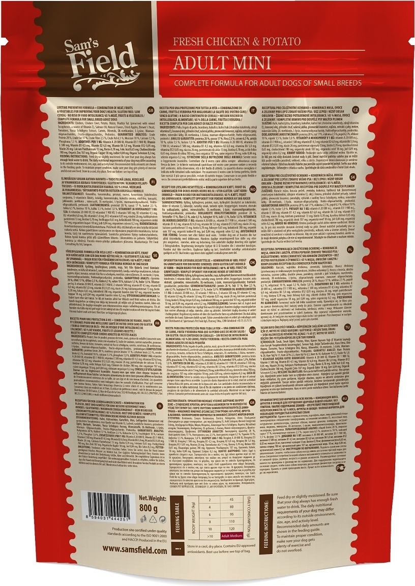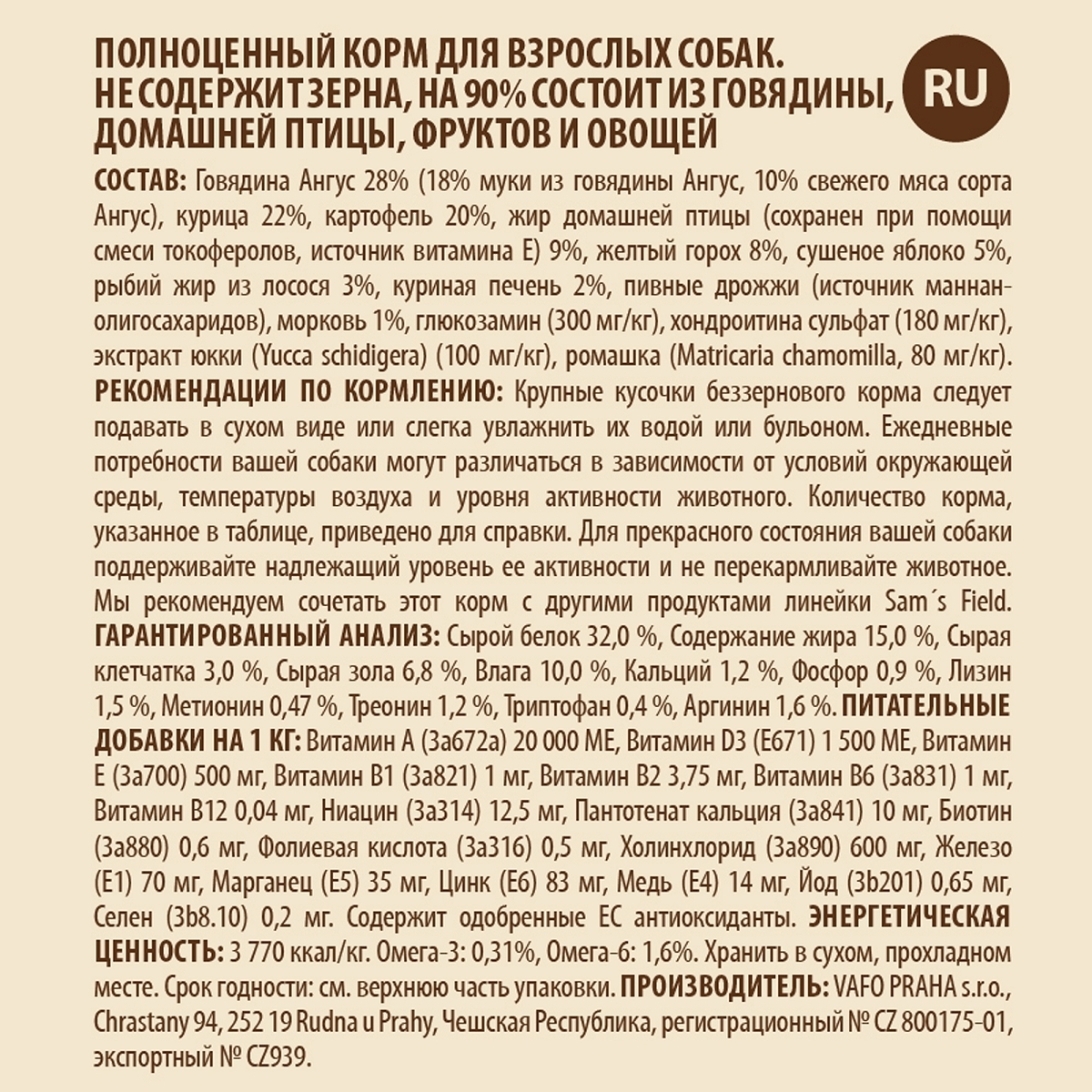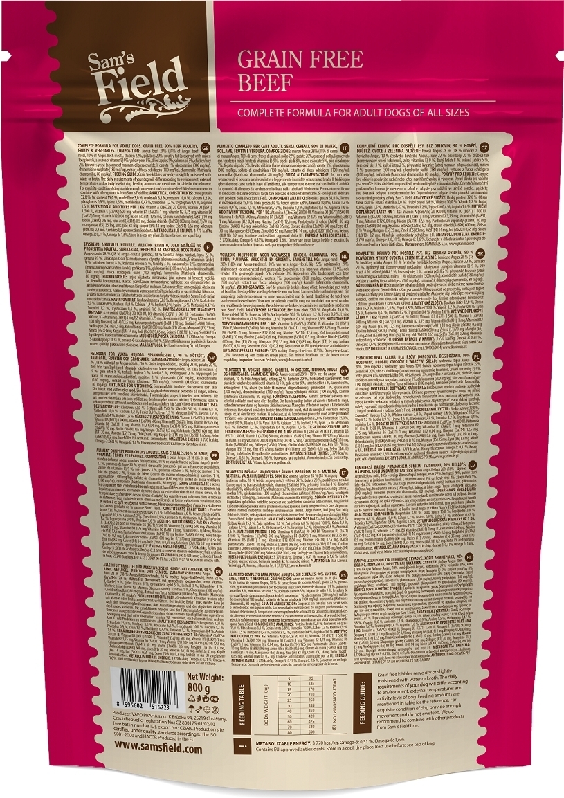 Корм сухой Sam´s Field беззерновой, для взрослых собак всех пород, из говядины, 800 г