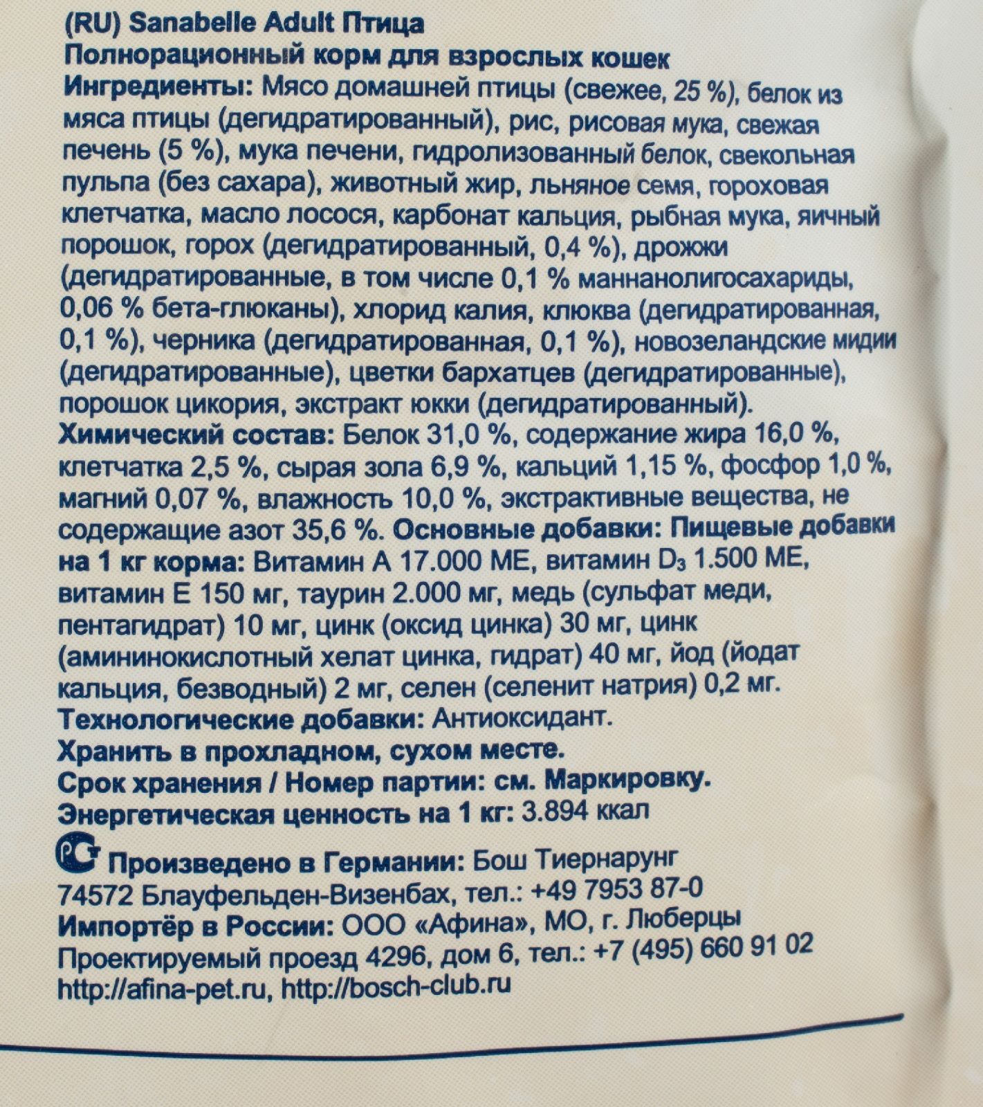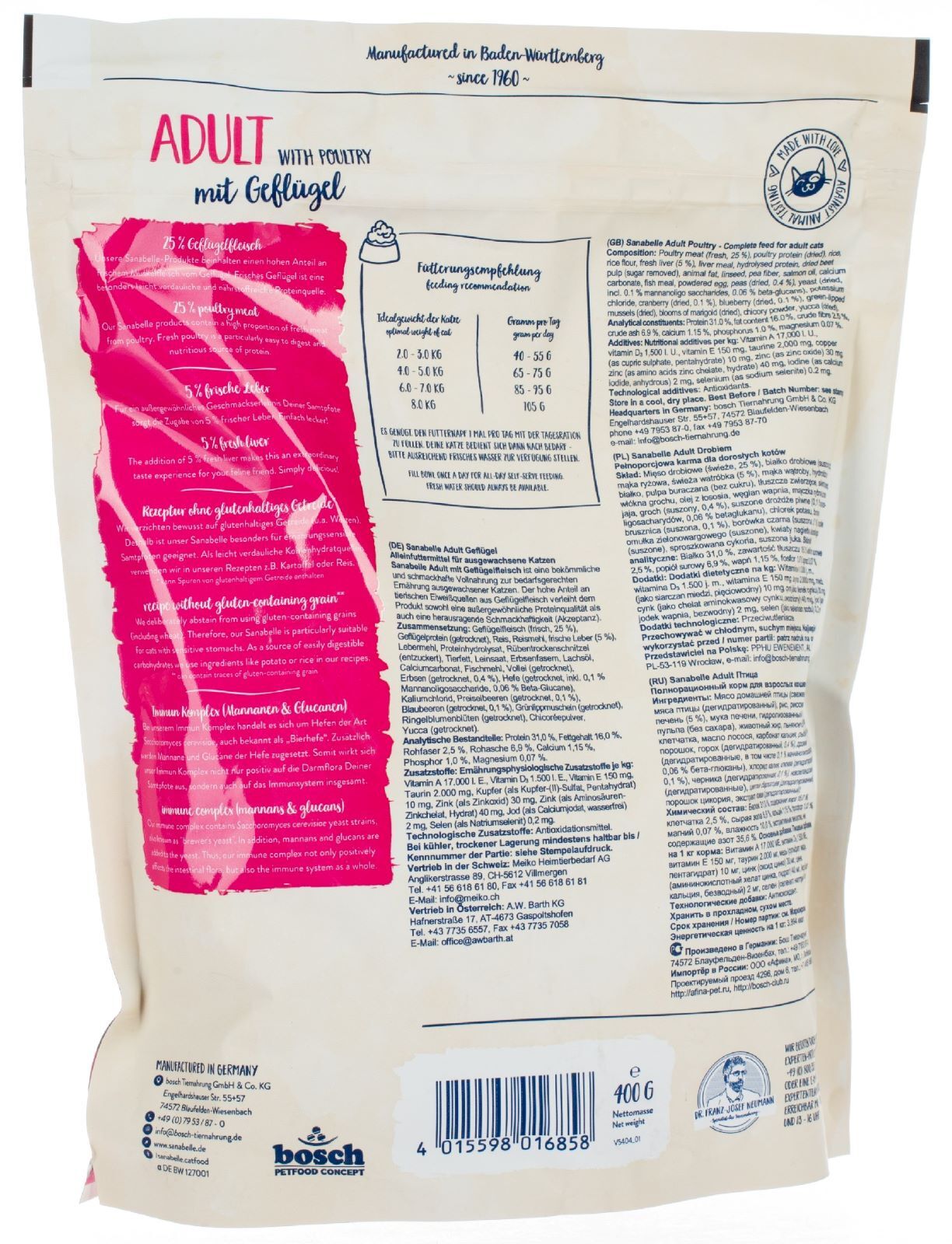 Сухой корм с птицей для взрослых кошек Sanabelle Adult, 400 г