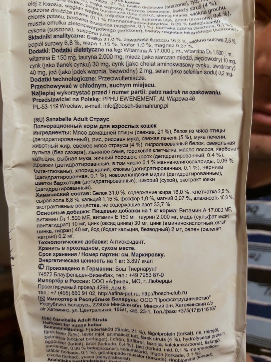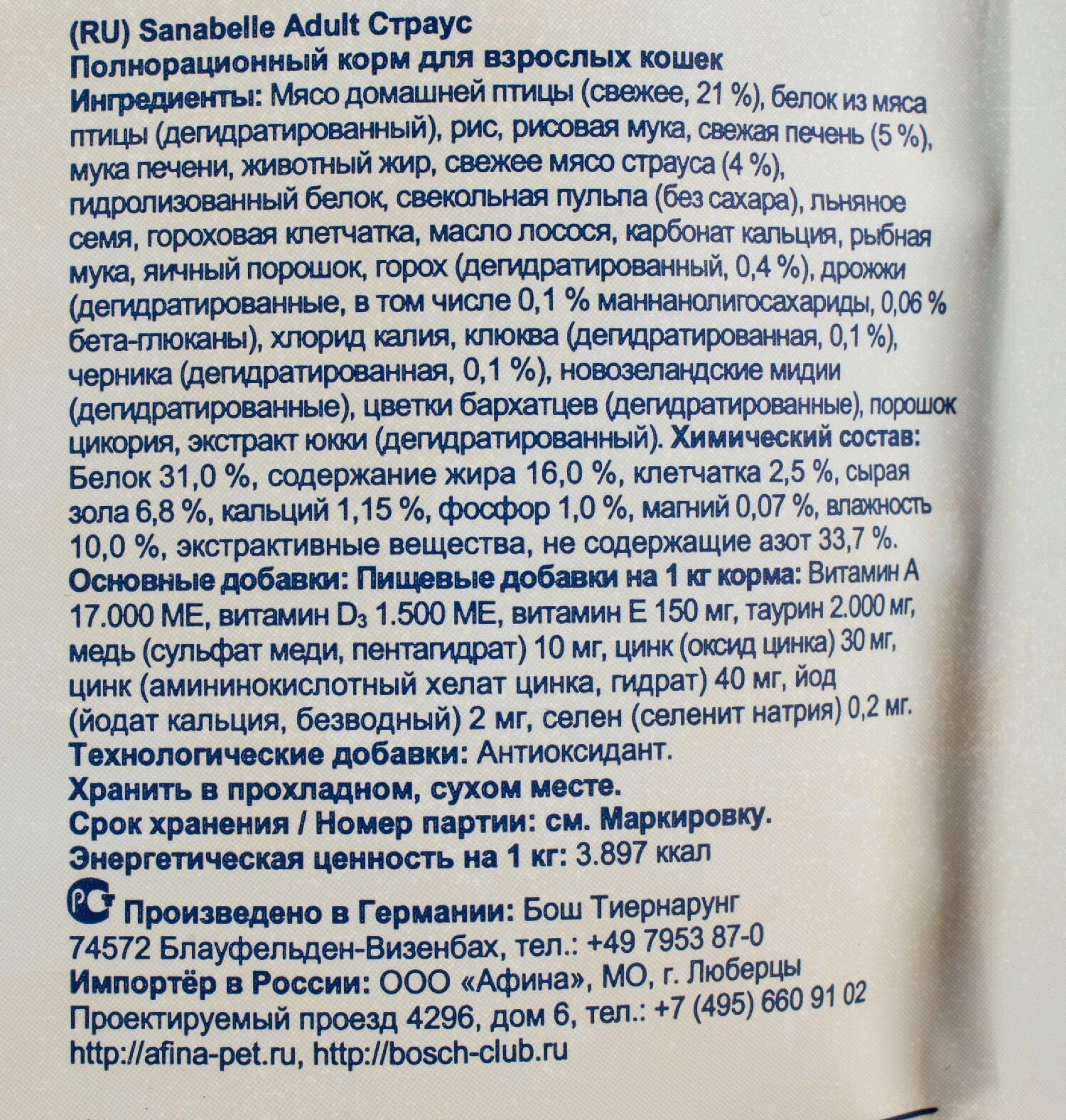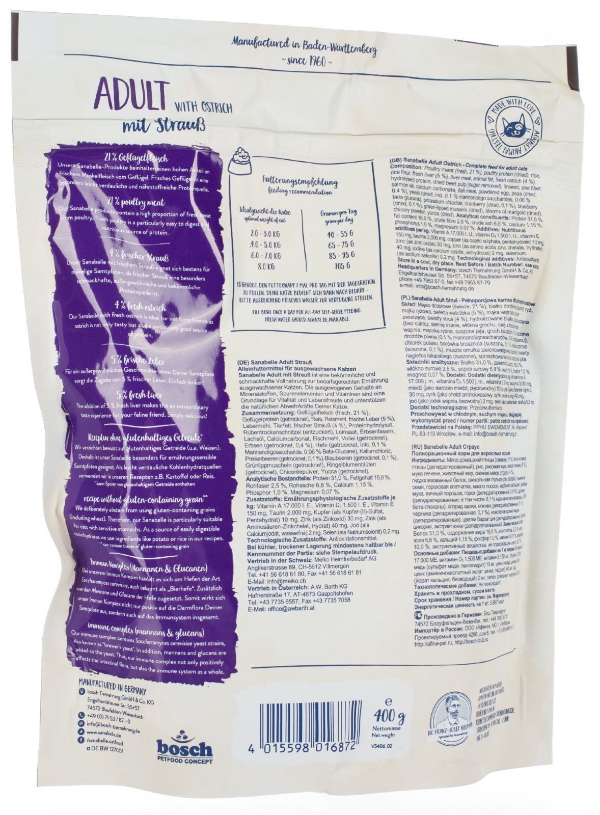 Сухой корм со страусом для для взрослых кошек всех пород Sanabelle Adult, 2 кг