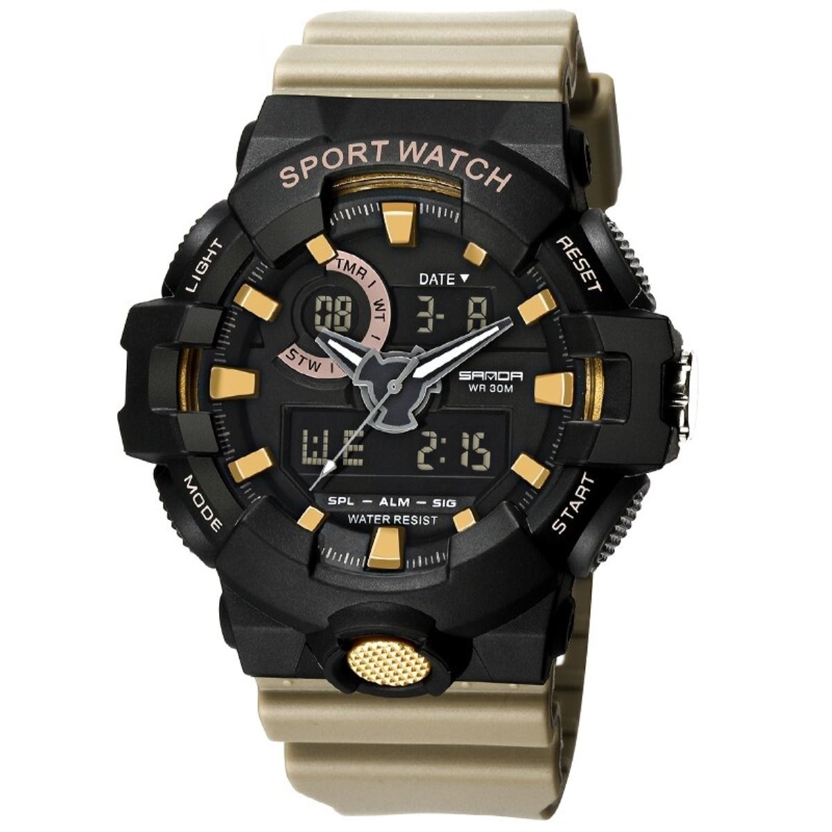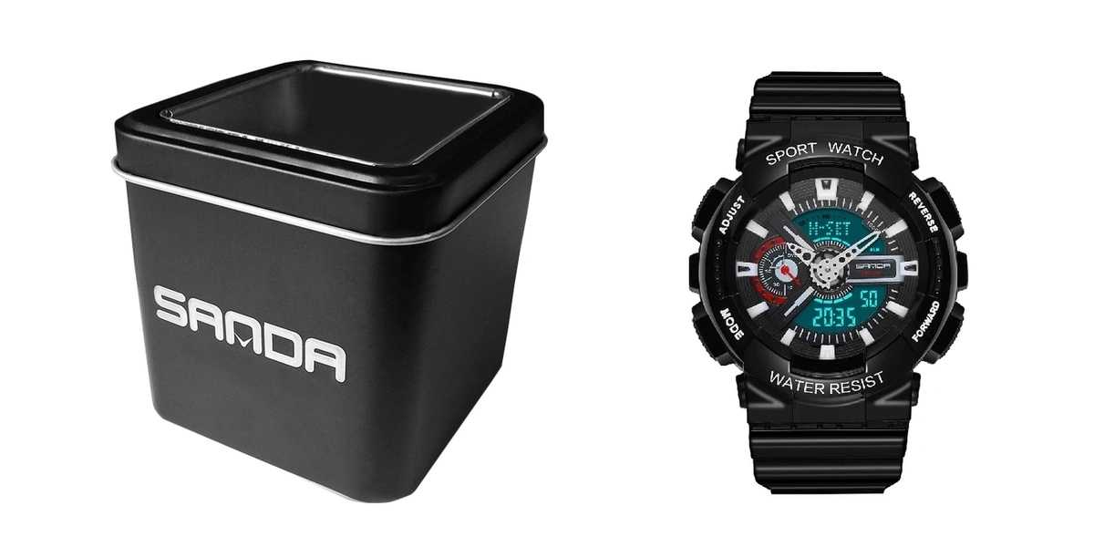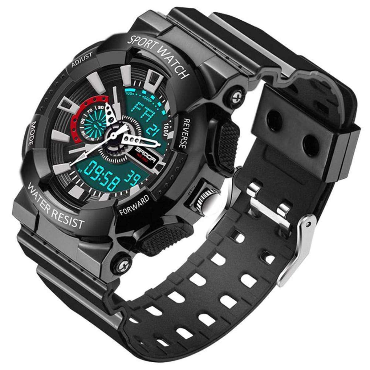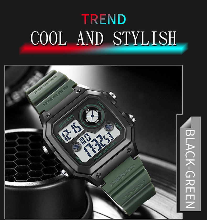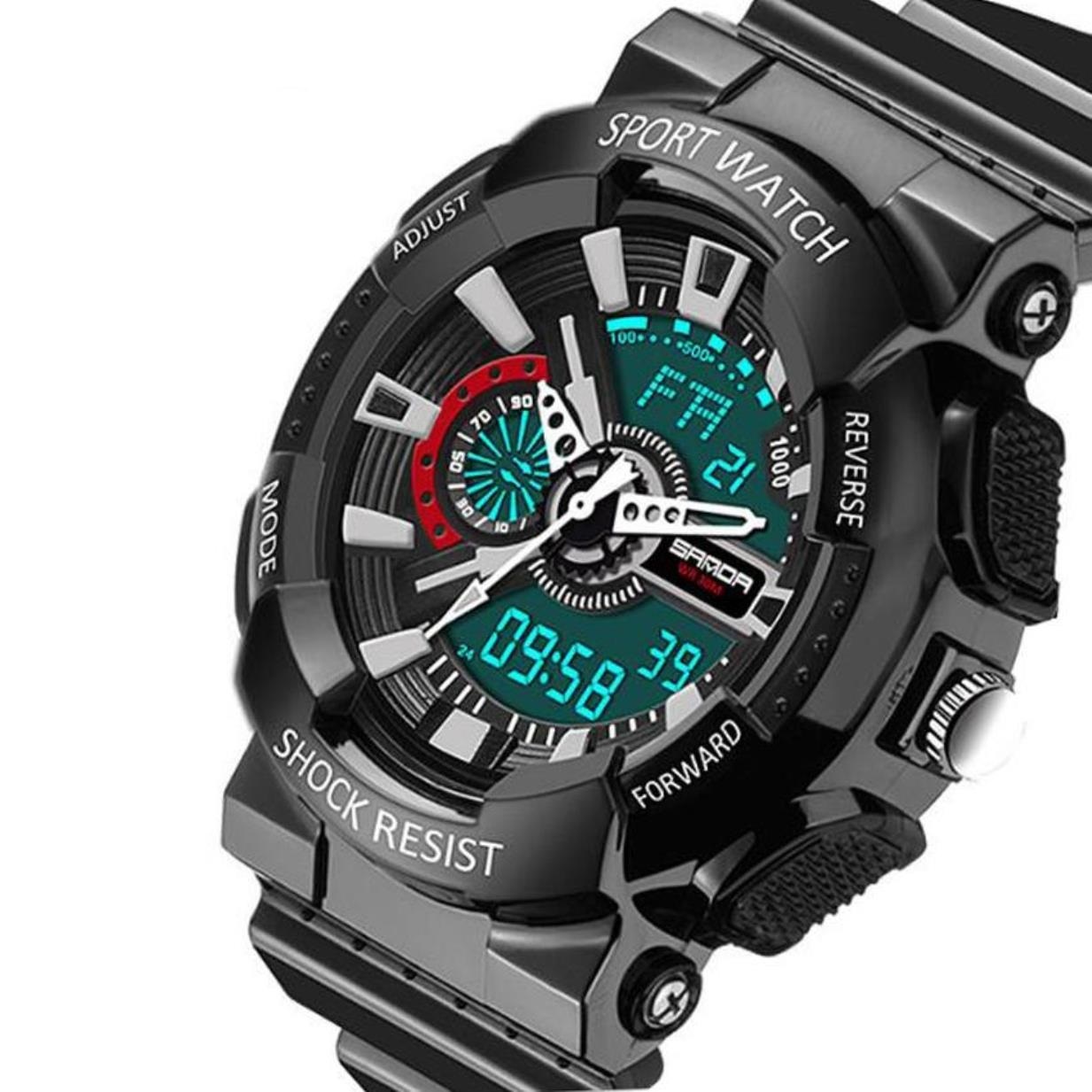 Спортивные часы SANDA 01 418, цвет черный, темно-зеленый