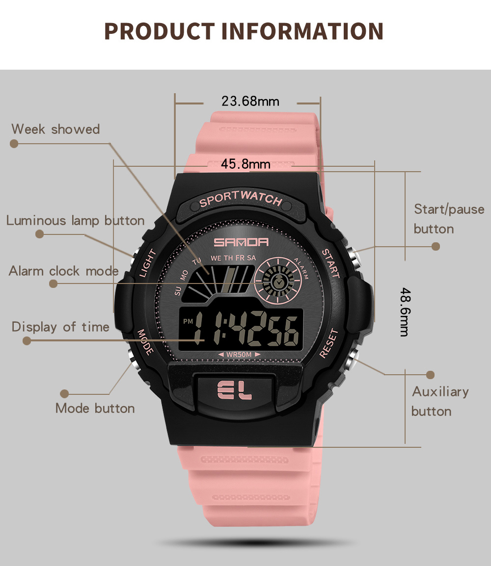 Спортивные часы SANDA 01 6004, цвет розовый, черный