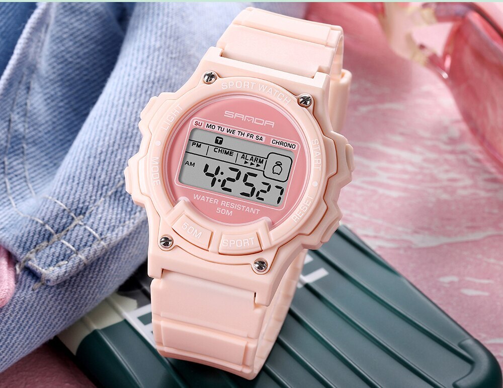 Спортивные часы SANDA 6022, цвет белый, розовый