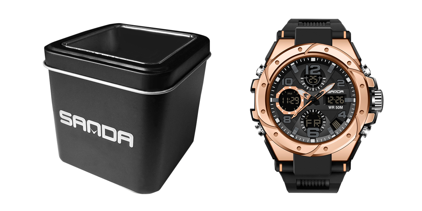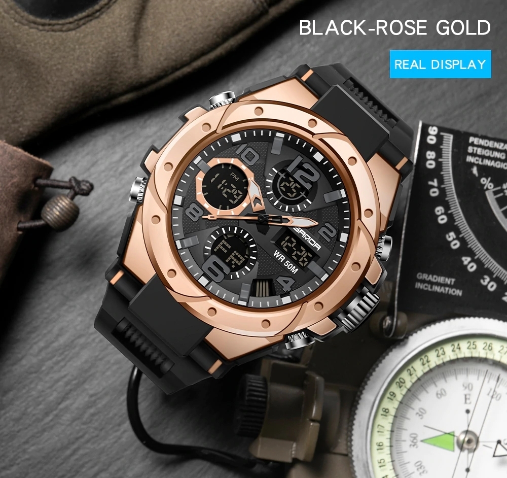 Спортивные часы SANDA 02 790, цвет черный, золотой