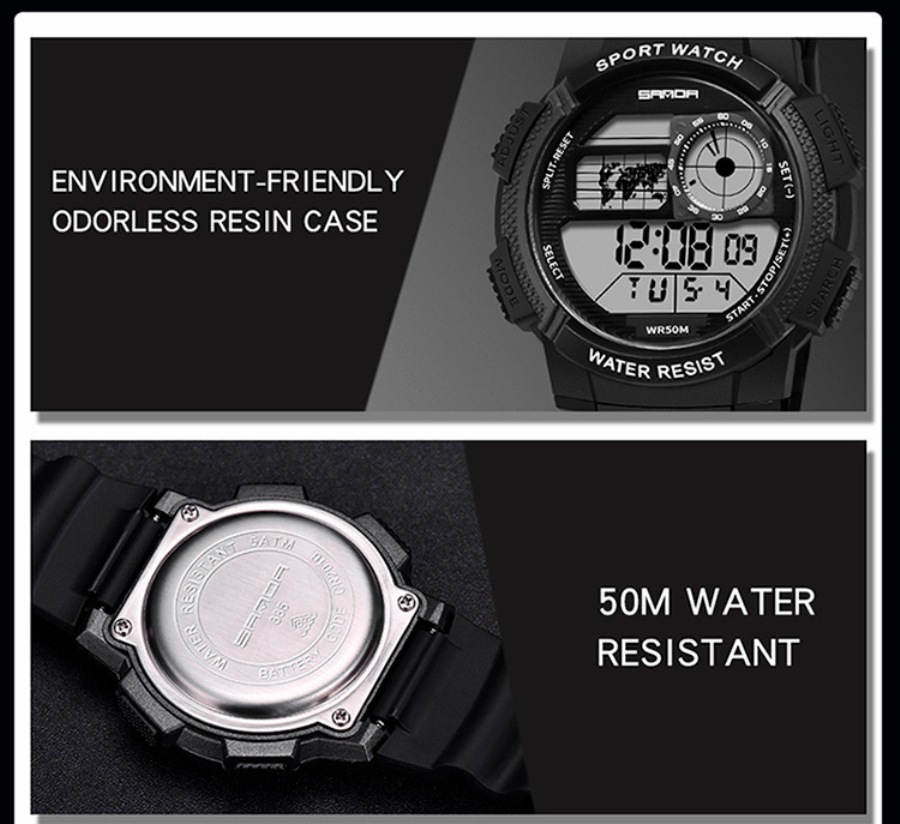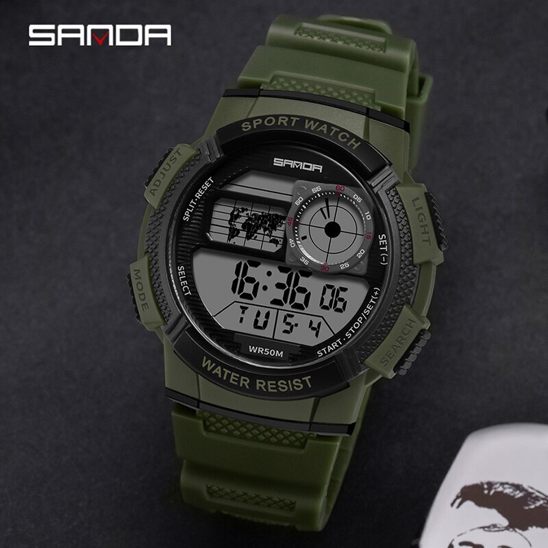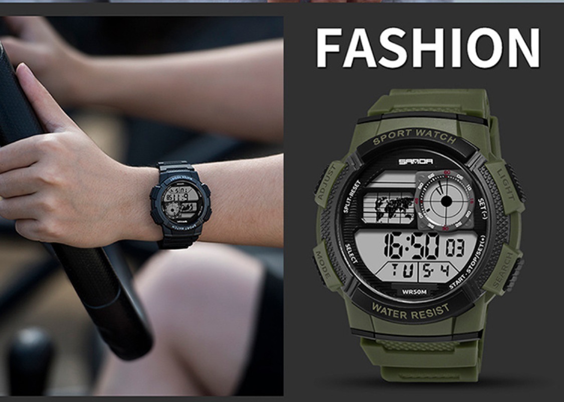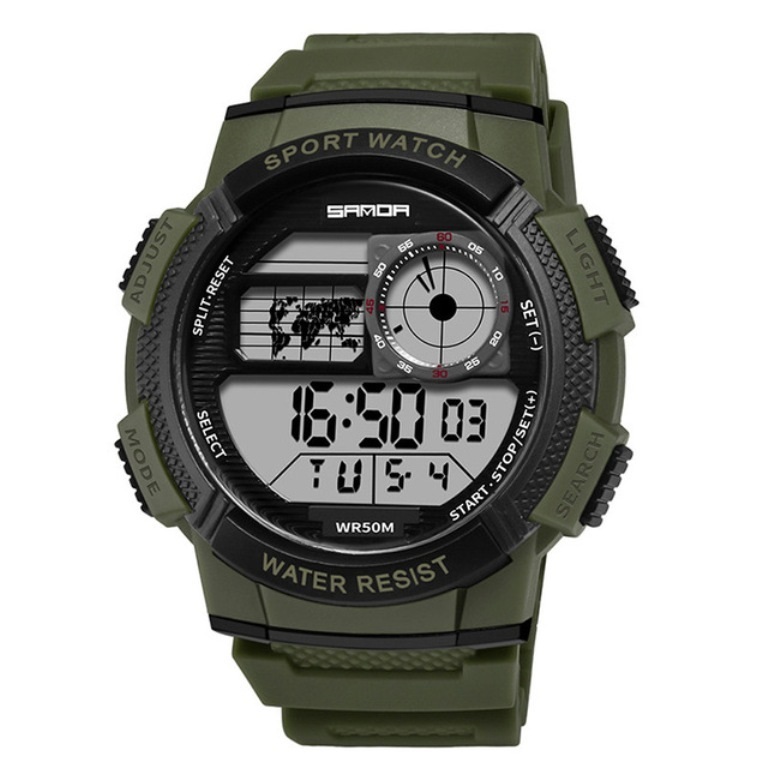 Спортивные часы SANDA 01 385, цвет зеленый, черный