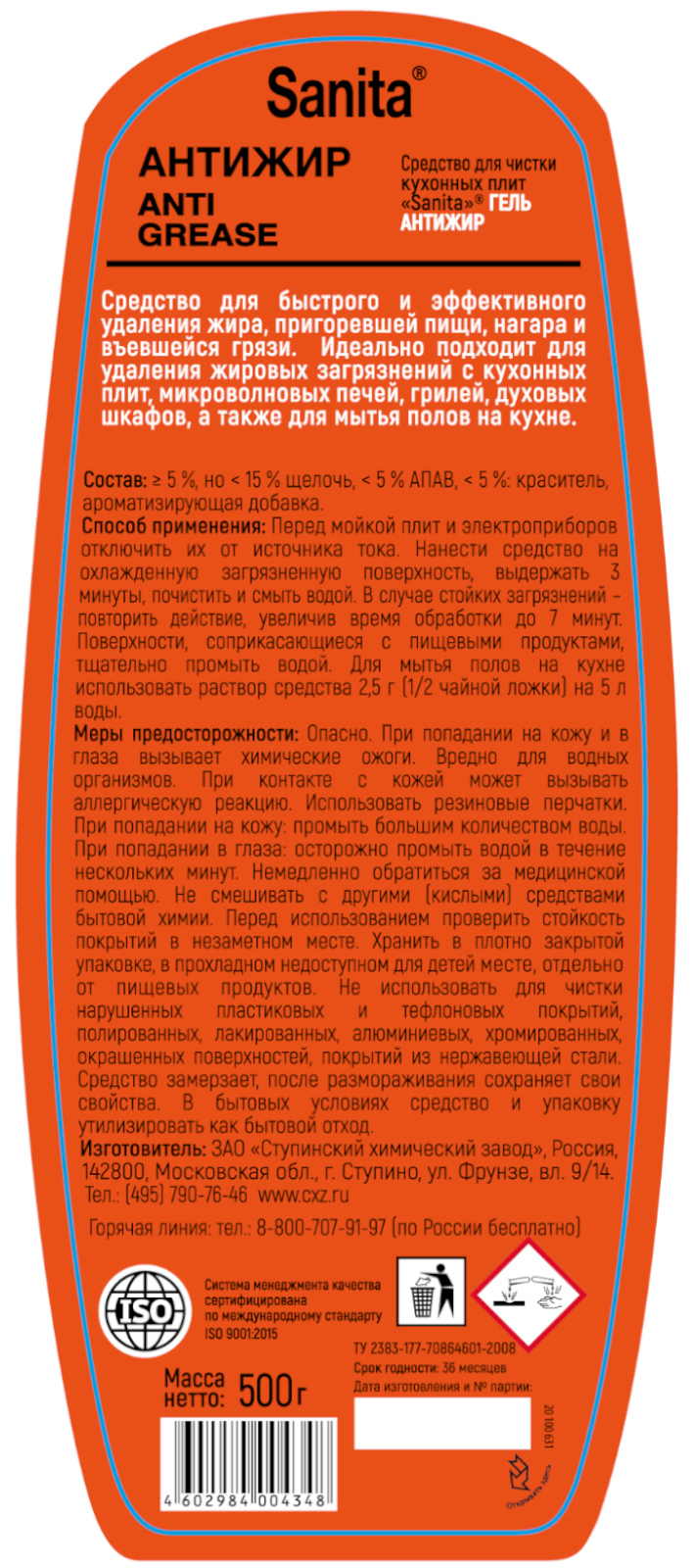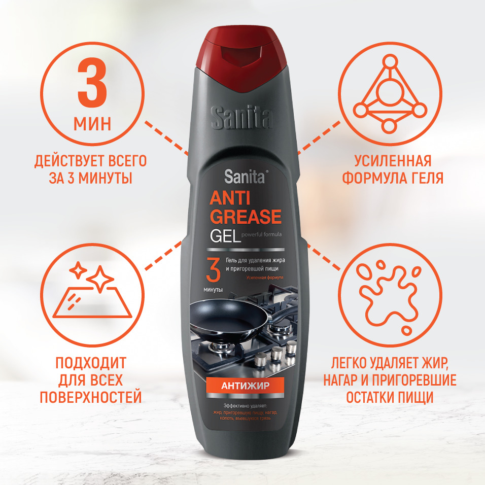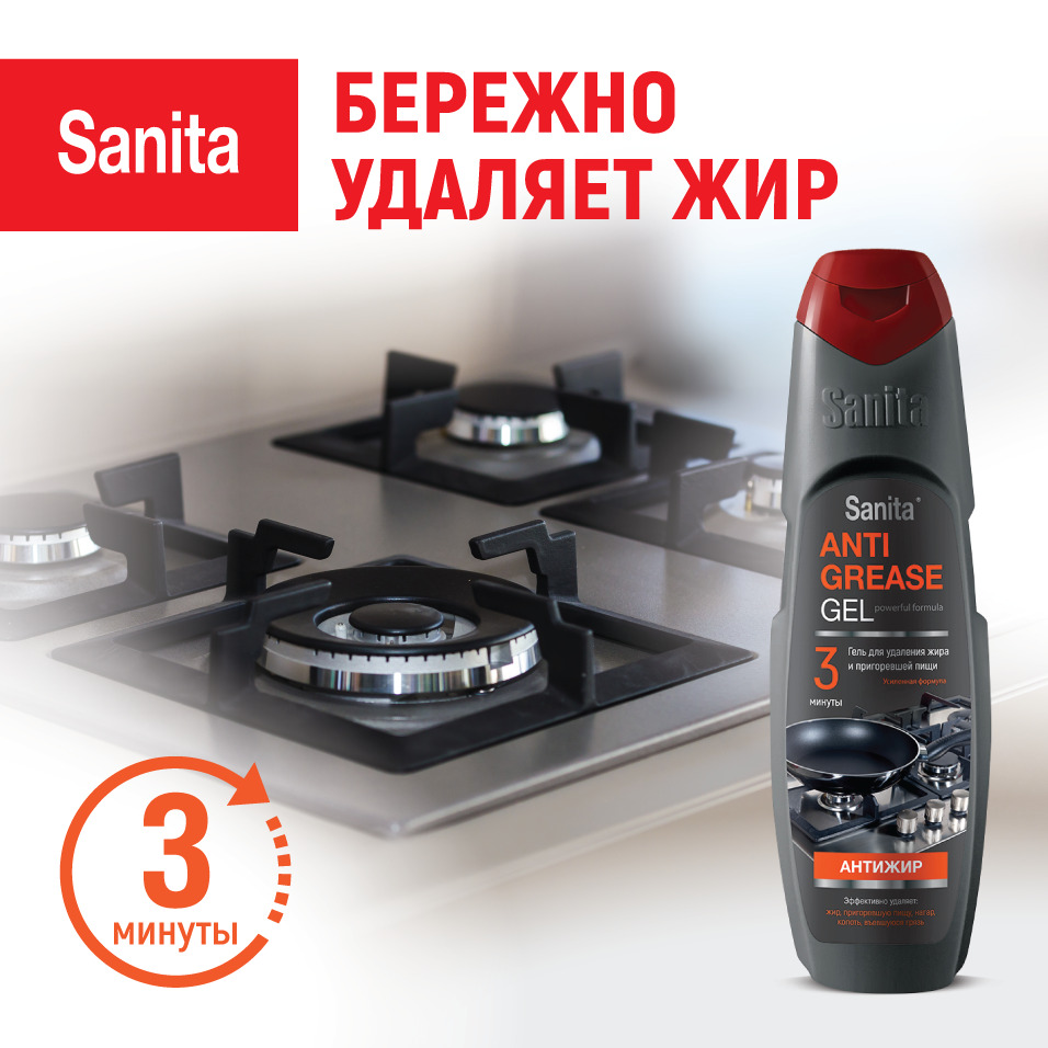 SANITA гель Антижир, 500 г, средство чистящее жироудалитель