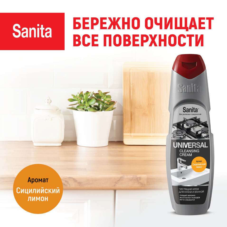 SANITA крем УНИВЕРСАЛ, Сицилийский лимон, 600 г, средство чистящее для кухни