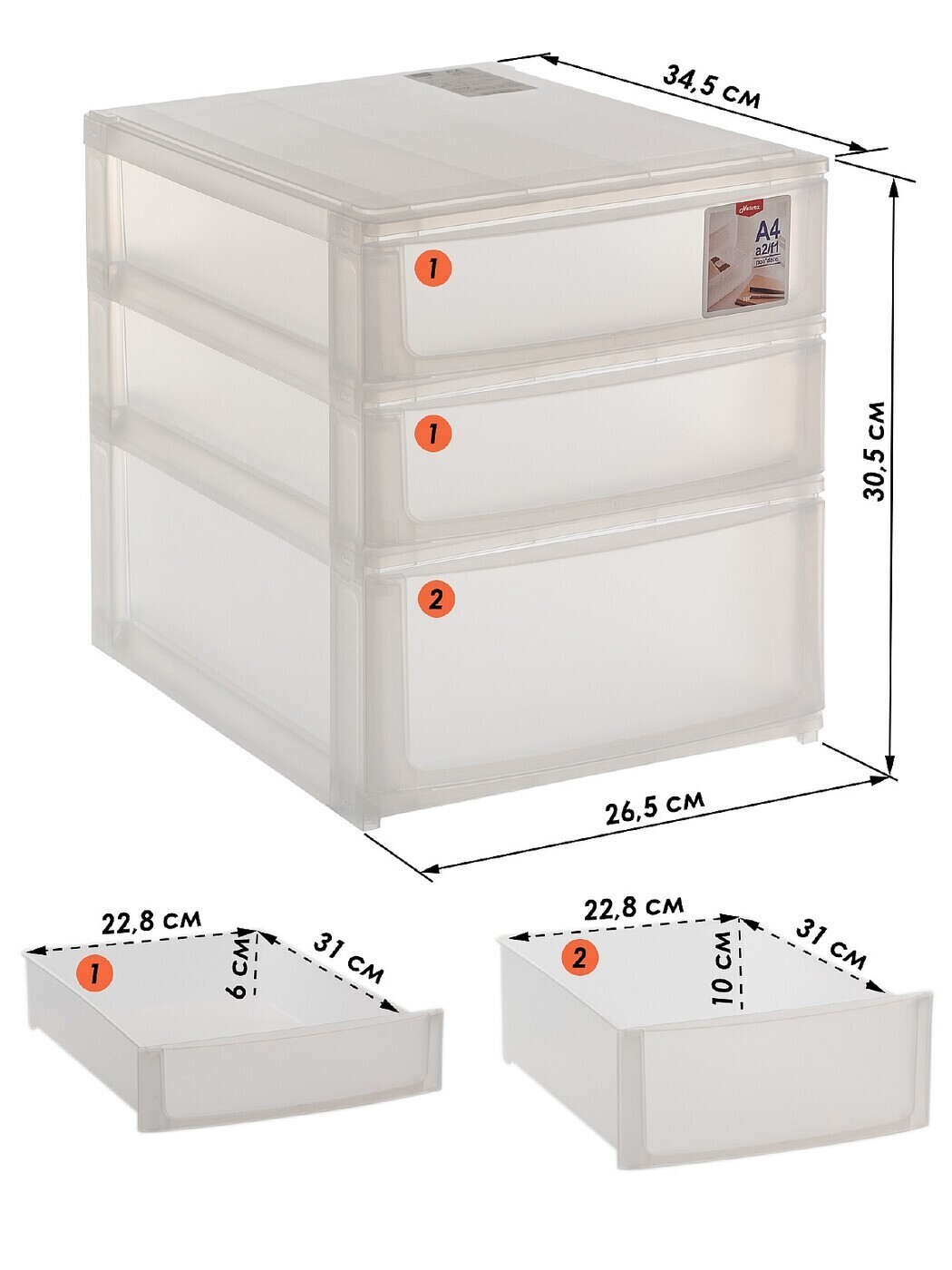 Органайзер настольный с 3 выкатными ящиками 34,5х26,5х30,5 см