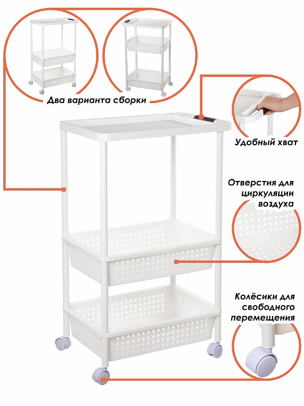 Этажерка Универсальная, на колесиках, 2 секц., Полипропилен, 33х49х71,5 см