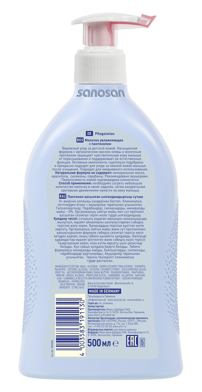 Sanosan Молочко увлажняющее с пантенолом, 500 мл