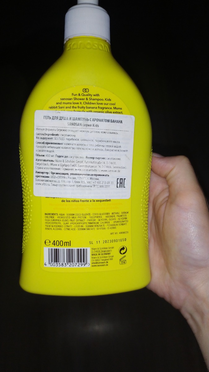 Sanosan Гель для душа и шампунь с ароматом банана, 400 мл