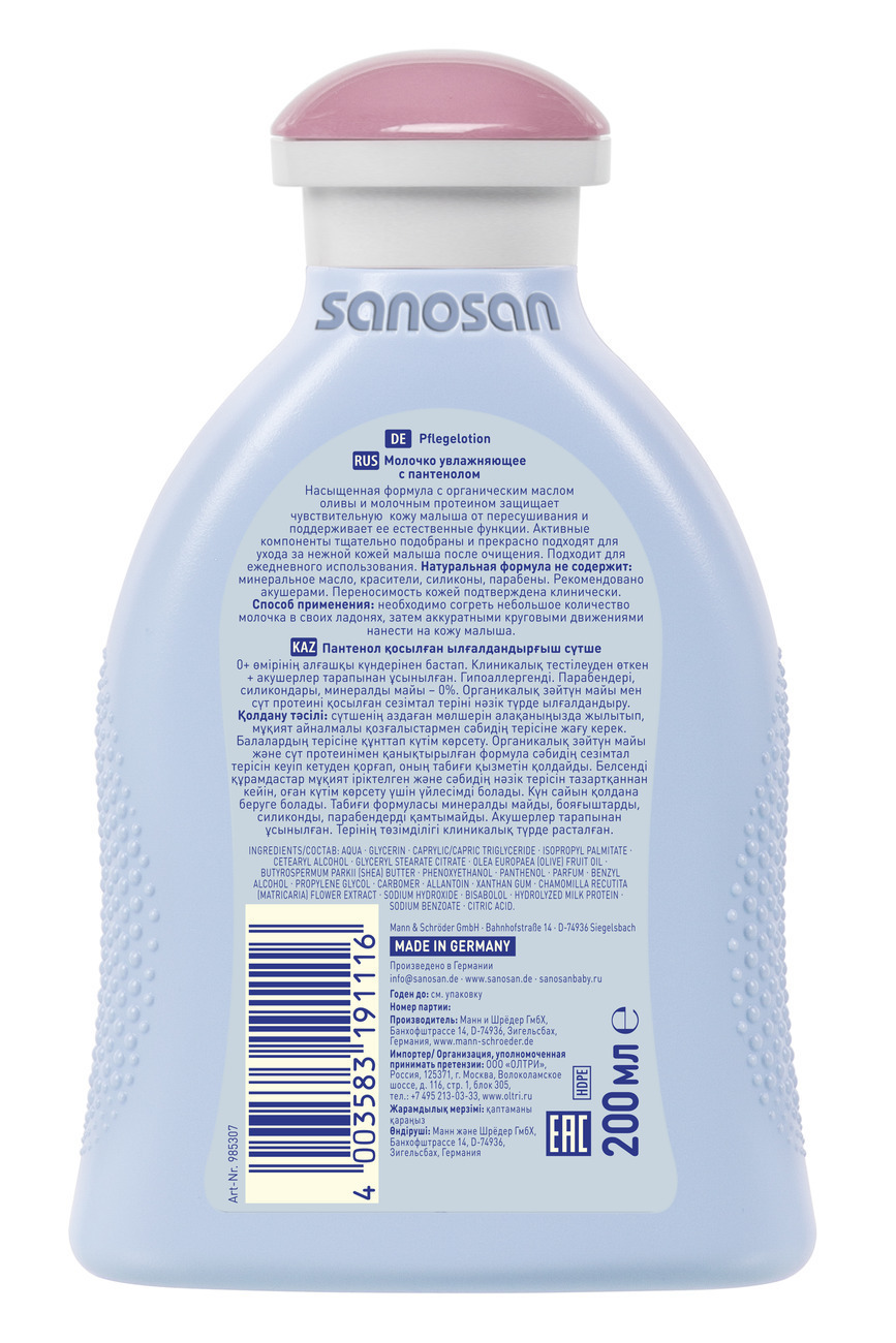 Sanosan Молочко увлажняющее с пантенолом, 200 мл