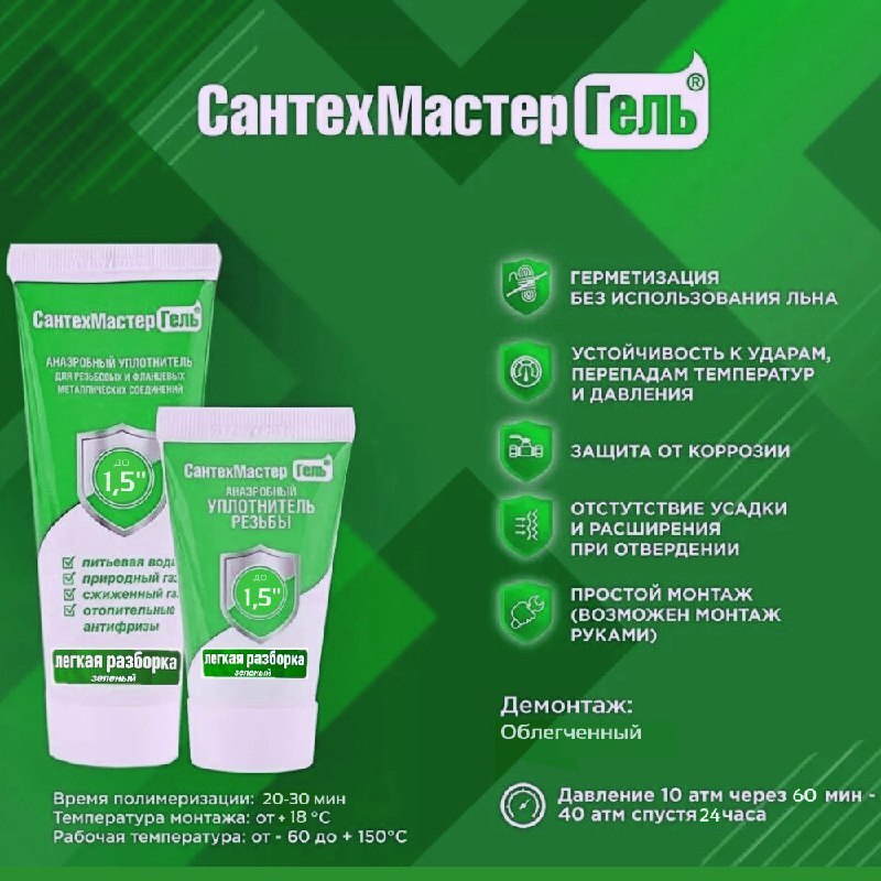 Анаэробный герметик СантехМастер Гель зеленый 60г