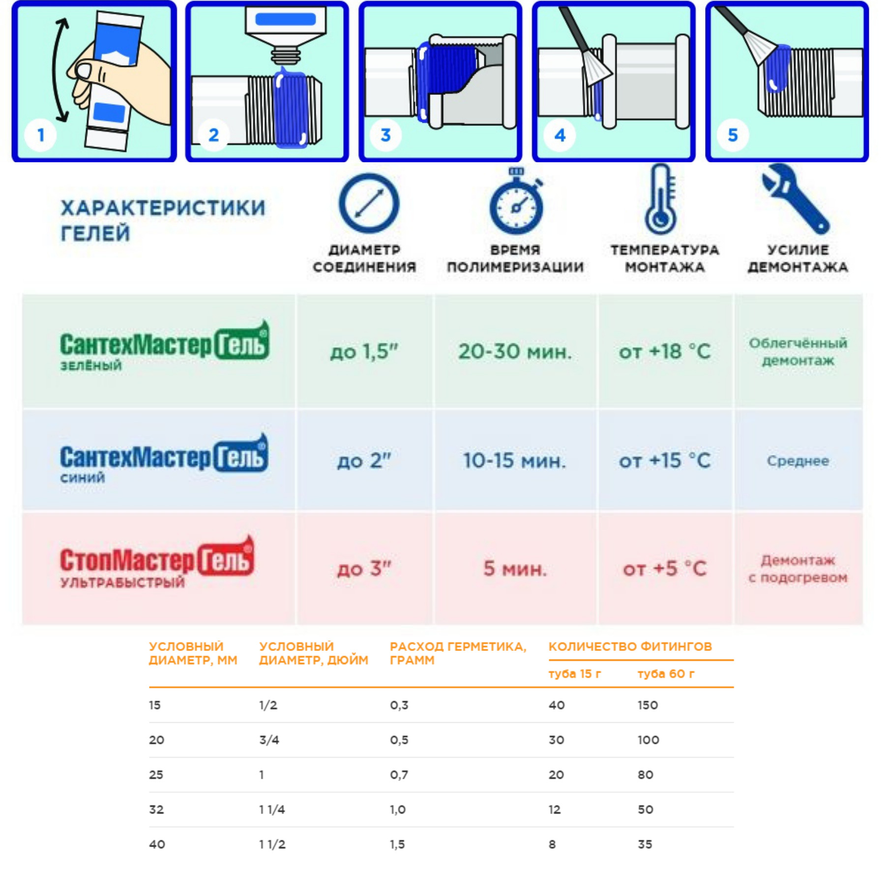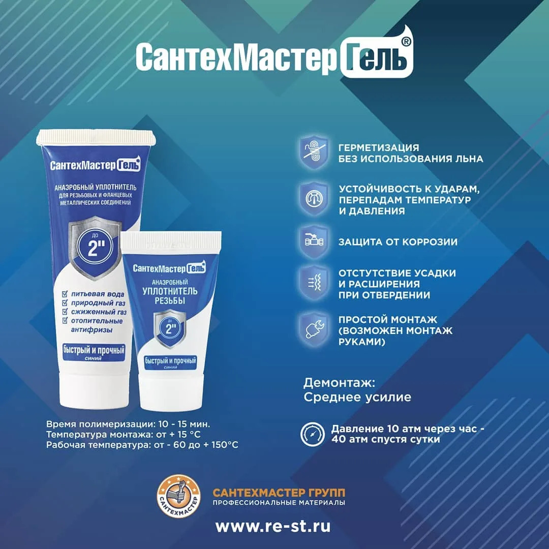 Резьбовой герметик "СантехМастерГель" (синий) (60 гр.)