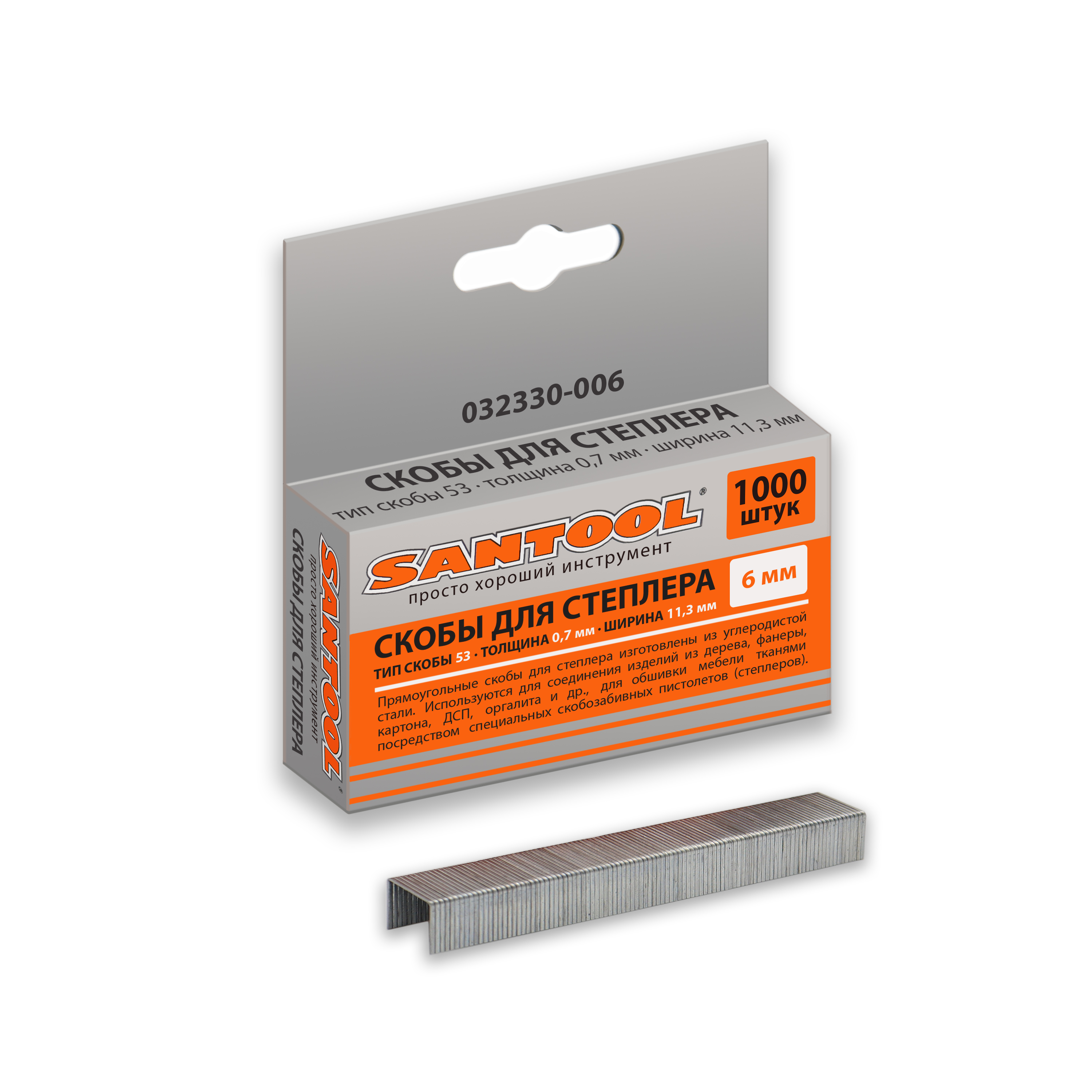 Скобы SANTOOL для строительного степлера 6 мм, толщина 0,7 мм ТИП 53 (1000 шт/уп)